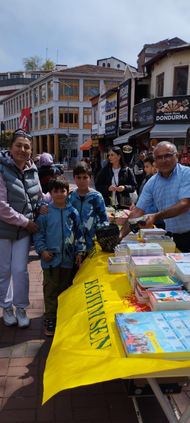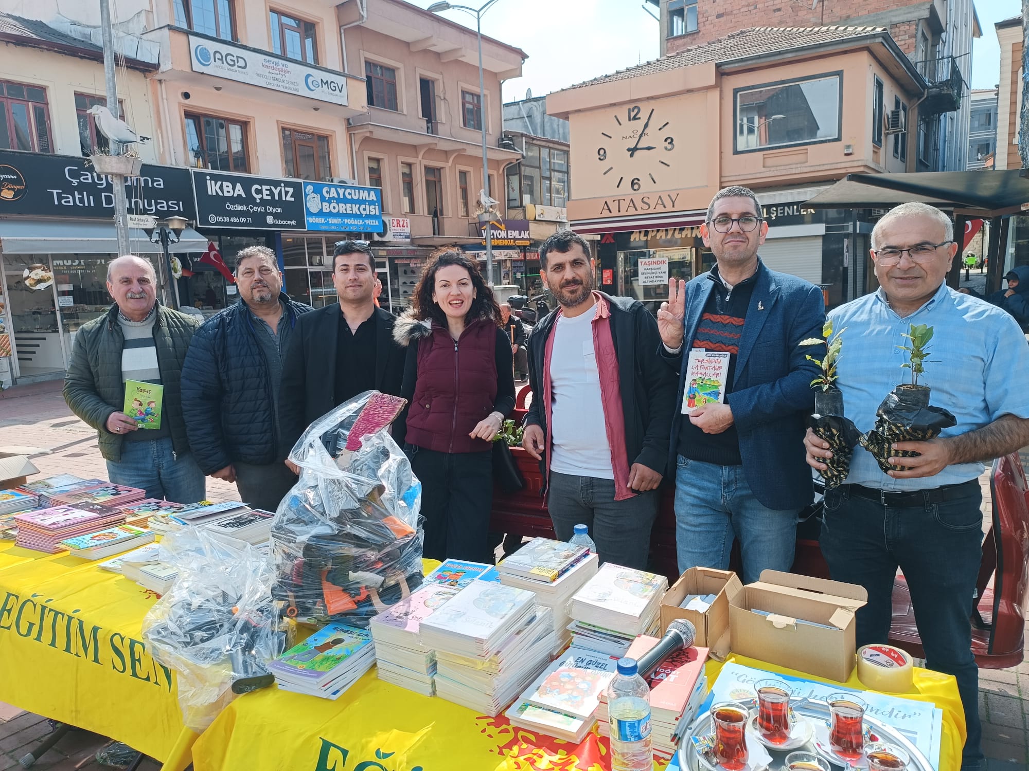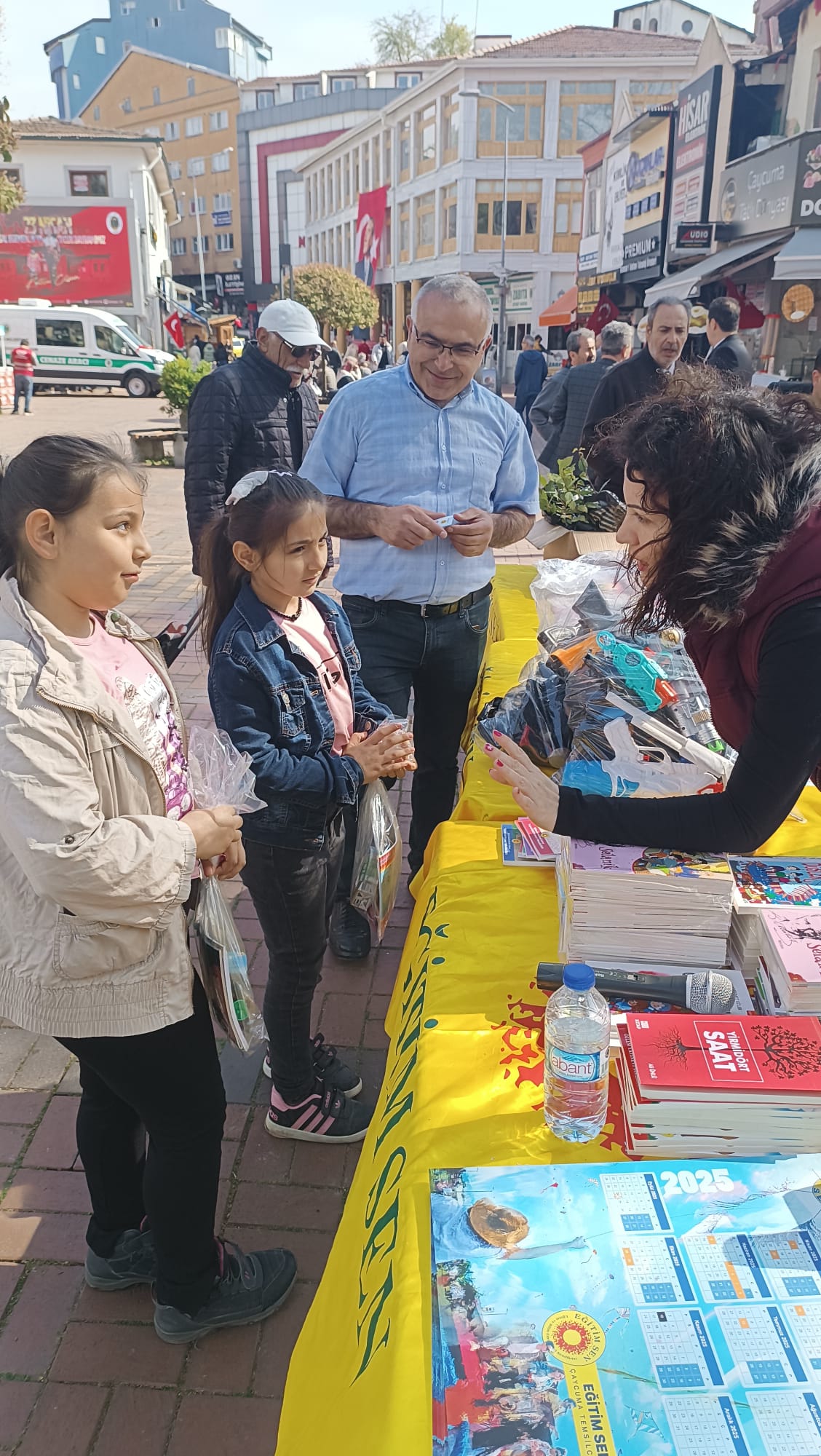 Saldırganlık ve şiddet eğilimine dikkat çekmek, şiddete hayır demek için 23 Nisan Ulusal Egemenlik ve Çocuk Bayramı'nda "Oyuncak Silahını Getir, Kitabını Al” etkinliğini gerçekleştirdiklerini söyleyen Eğitim Sen Çaycuma Temsilcisi İsmet Akyol, "Etkinlik öncesi yaptığımız çağrıda, 'Bir çocuğun elinde taşıdığı oyuncak silahlar, sadece bir oyuncak değil; çocuklara şiddet kültürünü küçük yaşlardan itibaren öğretmenin adımıdır. Şiddete dayanan bir geleceğin, bir düşüncenin, bir dünyanın habercisidir. Bir çocuğun elinden oyuncak silahı alıp yerine kitap verdiğinizde sadece bir oyuncağı değil, bir zihniyeti değiştirmiş olursunuz. Bugün çocuklara kitap uzatmak, onlara bilimsel düşüncenin tohumunu emanet etmektir. Bugün çocuklara kitap uzatmak, onları ezberin, oyuncak silah gibi şiddet sembollerinin karanlığından çıkarıp aklın, bilimin aydınlığına kavuşturmaktır. Oyuncak silah, sorgulamayı değil itaati öğretir. Oysa kitap; kuşkuyu, aklı, sezgiyi ve bilgiyi yan yana koyarak büyütür çocuğu. Bir çocuğun elinden oyuncak silahı alıp yerine kitap verdiğinizde sadece bir oyuncağı değil, bir zihniyeti değiştirmiş olursunuz. ‘Oyuncak Silahını Getir, Kitabını Al’ etkinliğiyle, çocuklarımıza ezberletilmiş şiddetin değil; özgür düşüncenin, sorgulamanın ve üretmenin yolunu açıyoruz. Gelin, çocuklarımızın ellerine bilimin ışığını tutuşturalım. Çünkü bilimle büyüyen bir çocuk, dünyayı değiştirebilir. Çünkü kitap okuyan çocuk, geleceği yeniden kurabilir. Çocuklarımızı ellerindeki oyuncak silahları bırakmaya; onun yerine bir kitabın sayfalarında düşüncenin, bilimin ve hayalin peşinden gitmeye davet ediyoruz. Tüm çocukları, velilerimizi ve Çaycuma halkını bu anlamlı dönüşümün bir parçası olmaya davet ediyoruz.' demiştik. Etkinliğe büyük bir ilgi vardı. 530 adet kitap, 150 adet defne fidanı, şiddet karşıtı şiirlerin yer aldığı yüzlerce kitap ayracı ve 300 adet uçurtma şenliği görselli duvar takvimi etkinliğe katılan çocuklara verildi. Etkinliği okullarda duyuran öğretmen arkadaşlarımıza, duyarlılık göstererek etkinliğe katılan çocuklara, öğrencilerimize, velilerimize ve kitap temini için katkı sunan dostlarımıza teşekkür ediyoruz. Okullar başta olmak üzere her alanda görülen şiddete karşı önlemlerin alınmasını talep ediyoruz." dedi.