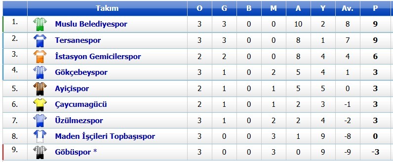 A Grubu’nda namağlup Muslu Belediyespor ile Tersanespor 9’ar puanla zirvede yer alırken, Muslu Belediyespor averajla lider durumda.