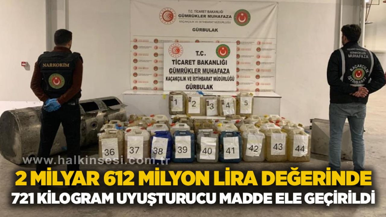 "2 milyar 612 milyon Türk Lirası değerinde, 721 kilogram sıvı metamfetamin cinsi uyuşturucu madde ele geçirildi"