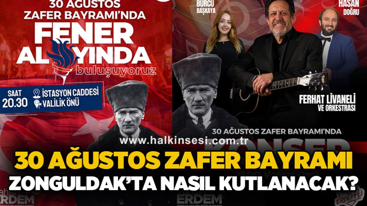 30 Ağustos Zafer Bayramı Zonguldak'ta çeşitli etkinliklerle kutlanacak. Fener Alayı'yla başlayan etkinlikler Valilik Önü'nde yapılacak olan ünlü sanatçıların konserleriyle renk kazanacak. 20:30'da başlayacak olan Fener Alayı'nın ardından, 21:00'de düzenlenecek olan konserler gecenin geç saatlerine kadar devam edecek.