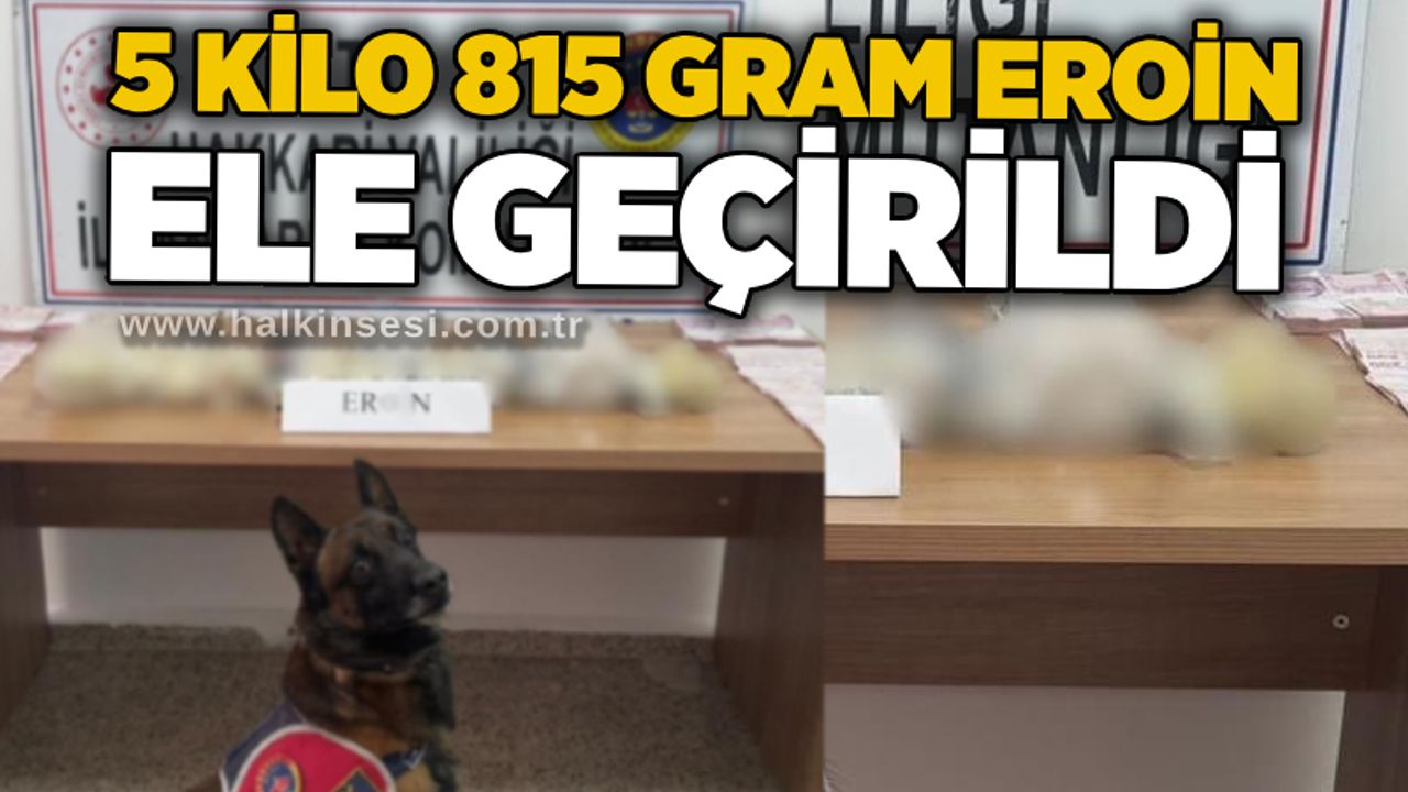 Hakkari İl Jandarma Komutanlığı'na bağlı Narkotik Suçlarla Mücadele Şube Müdürlüğü ekipleri, uyuşturucu tacirlerine yönelik çalışmalarını aralıksız devam ediyor. Hakkari merkez Geçimli köyü yol güzergâhında gerçekleştirilen yol kontrol ve arama faaliyetinde sürücünün şüpheli hareketler sergilemesi üzerine adli makamlardan alınan arama kararı doğrultusunda otomobilde araçta Narkotik ve Psikotrop Madde Arama Köpeği eşliğinde detaylı arama yapıldı. Yapılan aramada; 5 paket halinde toplam 5 kilo 815 gram eroin ile suçtan elde edildiği değerlendirilen 150 bin TL nakit para, 4 adet cep telefonu, 1 adet tablet ele geçirildi. Olayla bağlantılı olarak yakalanan 2 şüpheli şahıs, çıkarıldıkları adli makamlarca tutuklanarak Hakkari Kapalı Ceza İnfaz Kurumu’na teslim edildi.