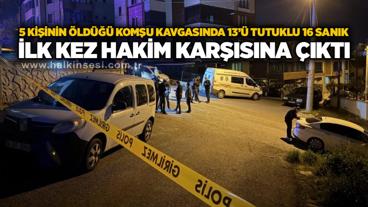Sakarya'nın Serdivan ilçesinde 5 kişinin hayatını kaybettiği, 5 kişinin de yaralandığı komşu kavgasında 13’ü tutuklu 16 sanık ilk kez hakim karşısına çıktı. İzleyicilere ve basına kapalı olan duruşmada 7 tutuklu sanık tahliye edildi.