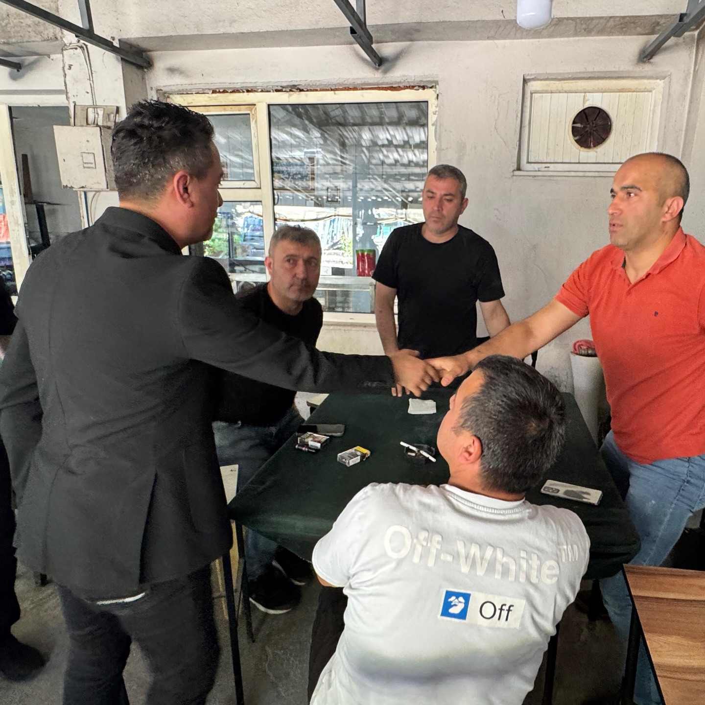 "Asma Mahalle’mizde Başkanımız Sayın Sezer Köroğlu, Mahalle Başkanımız Ahmet Çoban ve yönetim kurulu üyelerimiz ile birlikte Cuma Namazı sonrası mola’da olan Maden işçisi arkadaşlarımızla selamlaşarak hal hatırlarını sorduk.