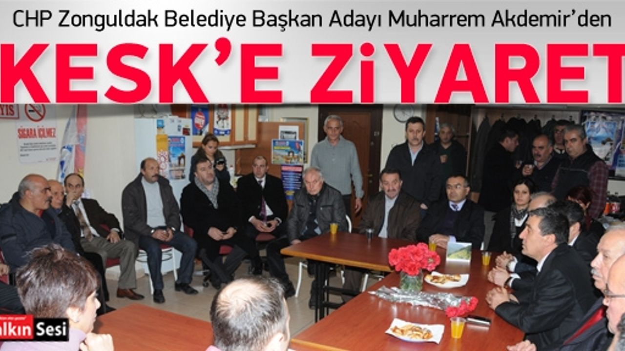 CHP Zonguldak Belediye Başkan Adayı Muharrem Akdemir, beraberinde, CHP Merkez İlçe Başkanı Cemal Şahin, Belediye Meclis Üyesi adayları ile birlikte, KESK Zonguldak Şubeler Platformu üyelerini ziyaret ederek bir süre sohbet etti.