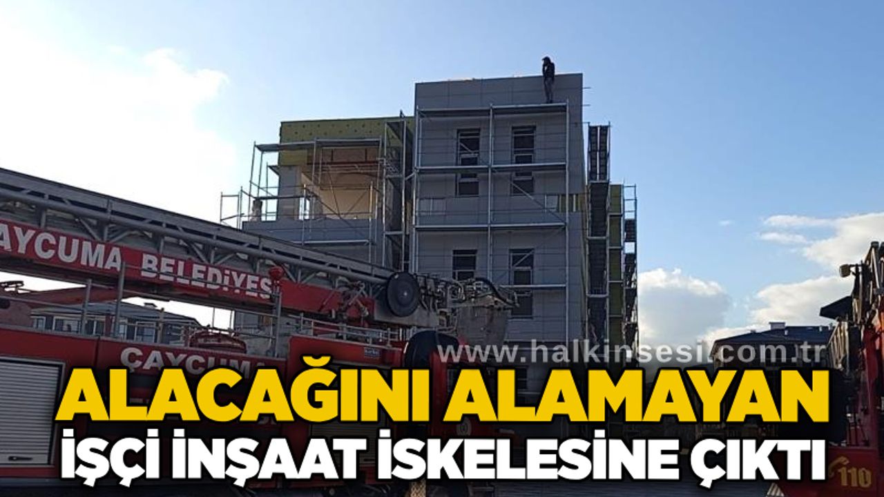 İddiaya göre, yüklenici firmadan alacağını tahsil edemediğini belirten N.U. isimli işçi, binanın 3’üncü katındaki iskeleye çıktı. Durumu fark eden çevredeki vatandaşların ihbarı üzerine olay yerine sağlık, polis ve Çaycuma Belediyesi İtfaiye Müdürlüğü ekipleri sevk edildi.