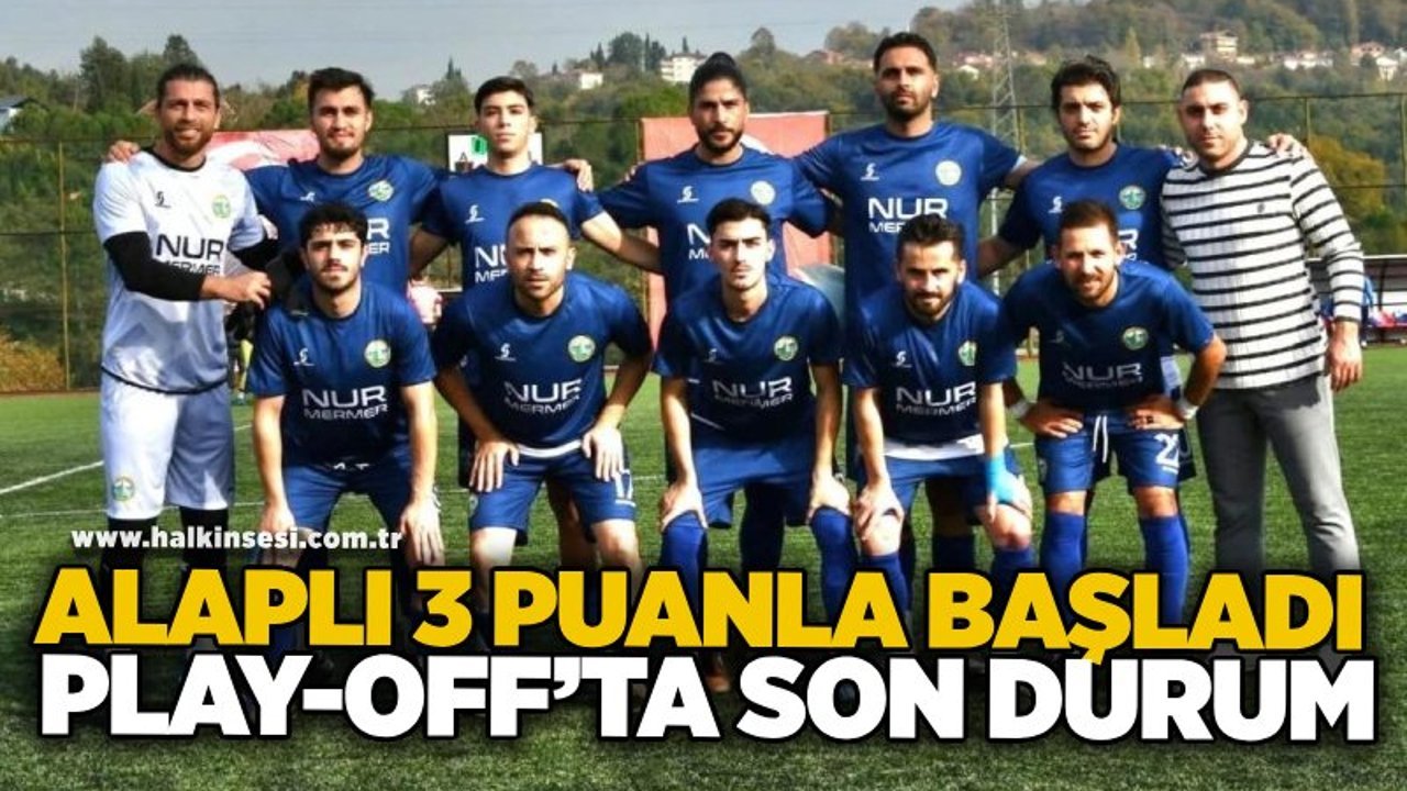 Zonguldak Deplasmanlı Süper Amatör Lig play-off’un ilk hafta maçları dün oynandı. 5 golün atıldığı Play-off’un ilk hafta maçında Alaplı Belediyespor, Kilimli Belediyespor’u 2-1 yenerken, Ortacıspor ile Velioğlu Gelişimspor 1-1 berabere kaldı. Bu sonuçların ardından Alaplı Belediyespor 3 puanla liderliğe otururken, 1’er puan alan Ortcıspor 2., Velioğlu Gelişimspor’da 3. oldu. Haftayı puansız kapatan Kilimli Belediyespor’da son sırada yer aldı.