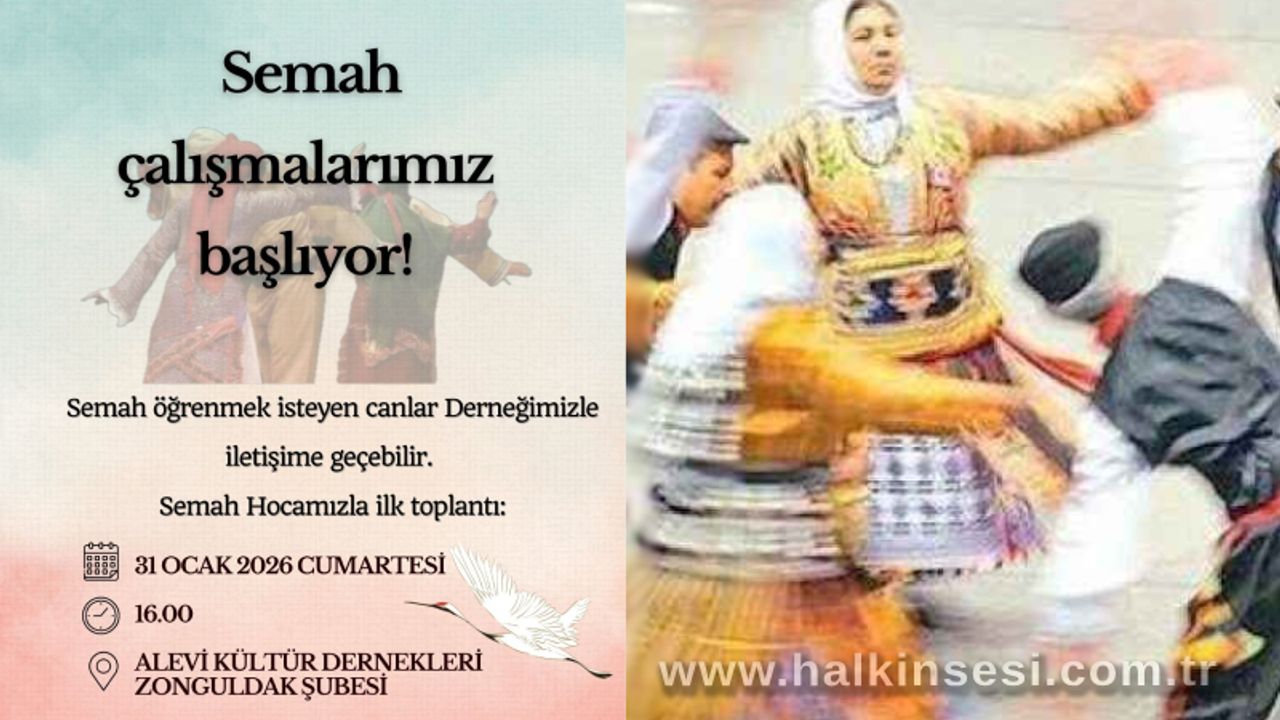 Dernek tarafından yapılan duyuruya göre, semah çalışmaları kapsamında ilk buluşma 31 Ocak 2026 Cumartesi günü saat 16.00’da gerçekleştirilecek. İlk toplantının, semah hocasıyla tanışma ve çalışma sürecine ilişkin bilgilendirme amacı taşıdığı belirtildi.