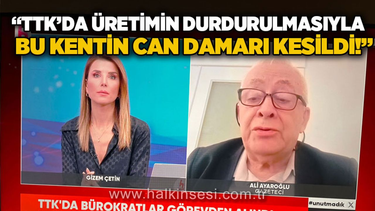 Basın Konseyi Üyesi ve aynı zamanda Çağdaş Gazeteciler Derneği Zonguldak Şube Başkanı Ali Ayaroğlu, Halk TV ekranlarında Gizem Çetin’in sunduğu "Parantez" programına konuk oldu. Ayaroğlu, Türkiye Taşkömürü Kurumu’nda (TTK) dört müessese müdürlüğünde üretimin durdurulmasının Zonguldak ve bölge halkı üzerinde ciddi olumsuz etkiler yarattığını söyledi.