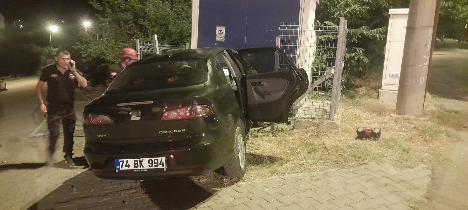 74 BK 994 plakalı araç sürücüsü çarşı merkezinden Çaycuma Devlet Hastanesi şehir mezarlığı bitişindeki elektrik trafosuna çarptı.