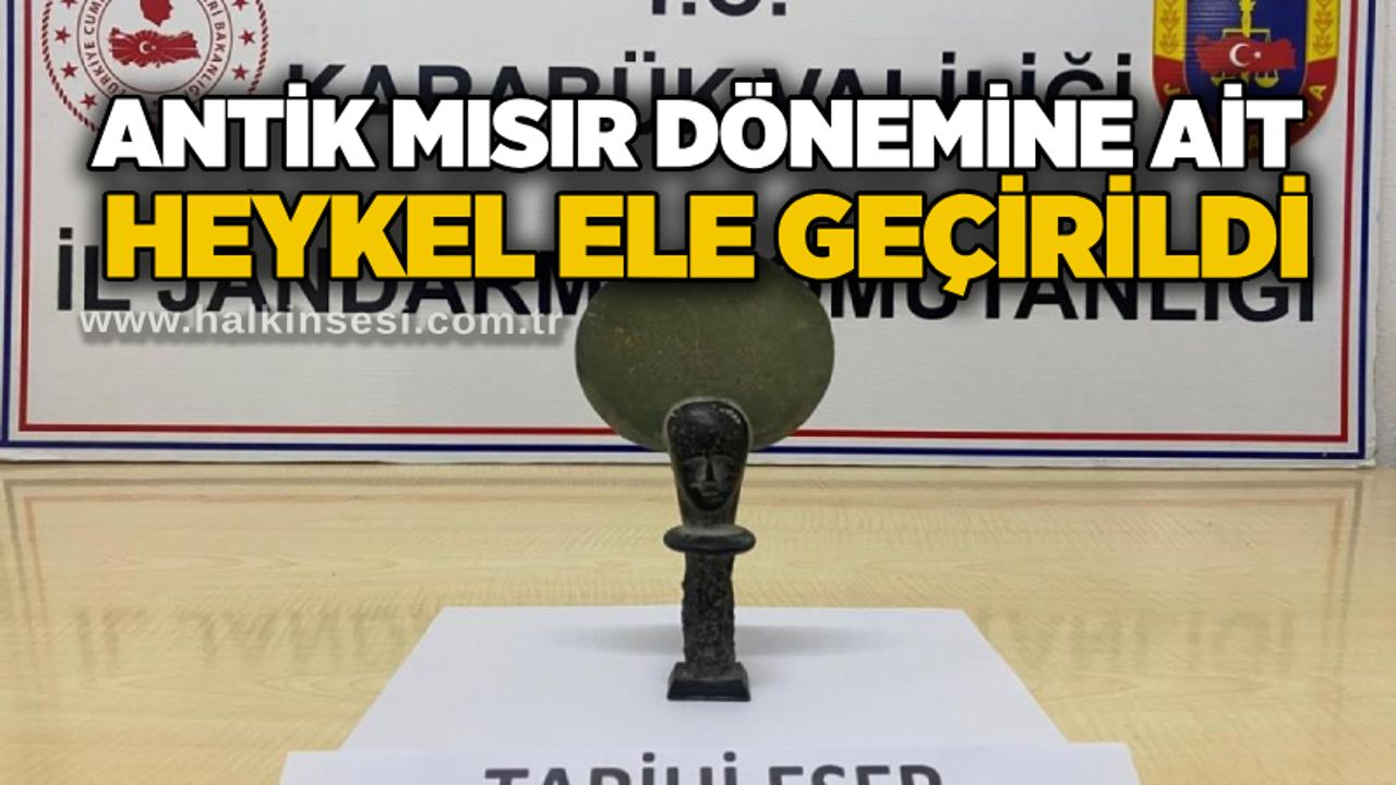 Edinilen bilgiye göre, İl Jandarma Komutanlığı ekipleri tarafından il merkezi ve Safranbolu ilçesinde 2 ayrı operasyonda, 2 şahsın iş yerinde arama yapıldı. Yapılan aramalarda; milattan önce 3. veya 5. yüzyıla ait Antik Mısır dönemine ait olduğu değerlendirilen 1 adet heykel, Bizans, Roma ve Osmanlı dönemlerine ait olduğu değerlendirilen 60 adet sikke, 10 adet tarihi obje, 5 adet tarihi yüzük, 2 adet tarihi kolye ucu ele geçirildi.