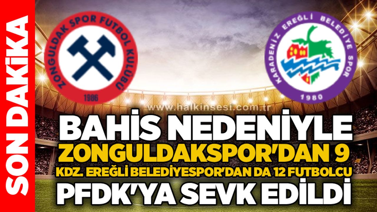 Türkiye Futbol Federasyonu, profesyonel liglere yönelik olarak yürütülen bahis soruşturması kapsamında bahis oynadığı tespit edilen Zonguldakspor'dan 9, Kdz. Ereğli Belediyespor'dan 12 futbolcu olmak üzere 1024 futbolcunun Futbol Disiplin Talimatı'nın 57. maddesi uyarınca 10.11.2025 tarihinden itibaren tedbirli olarak PFDK'ya sevk edilmesine karar verdi.
