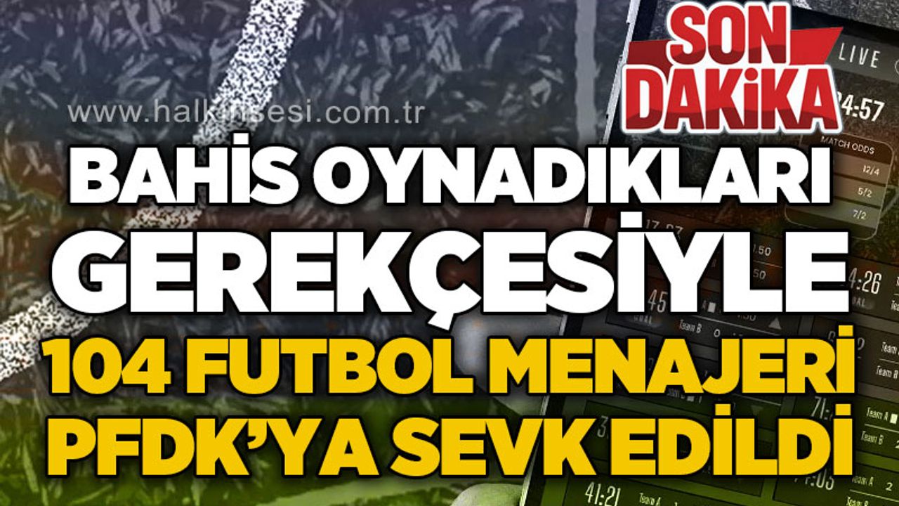 Türkiye Futbol Federasyonu’nca yürütülen bahis soruşturması kapsamında, Türkiye Futbol Federasyonu’na tescilli ve faal olduğu dönemde bahis oynadığı tespit edilen 104 Futbol Menajerleri Futbol Disiplin Talimatı’nın 57. maddesi uyarınca PFDK'ya sevk edildi.