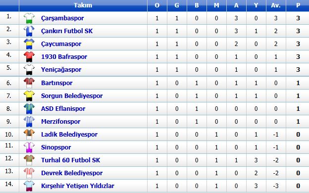 Çarşambaspor, Çankırı FK, Çaycumaspor,1930 Bafraspor ve Yeniçağspor sezona galibiyetle başladılar. Bartınspor, Sorgun Belediyespor, ASD Eflanispor, Merzifonspor ise lige 1’er puanla başlarken, Ladik Belediyespor, Sinopspor, Turhal 60 FK, Devrek Belediyespor ve Kırşehir Yetişen Yıldızlar’da mağlubiyetle başladılar.