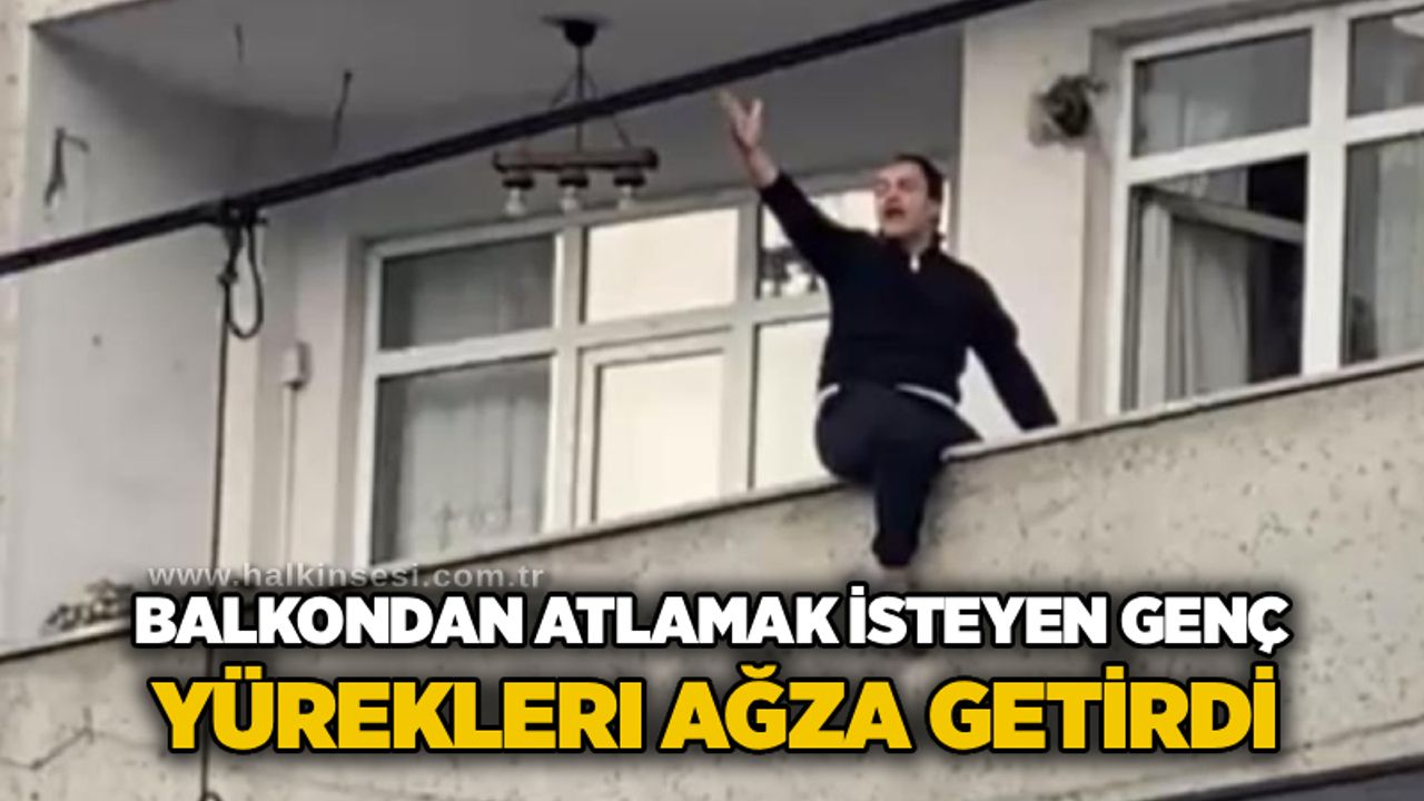 Bir süre sonra ikna edilen genç balkondan inerken, o anlar cep telefonu kamerasına yansıdı.