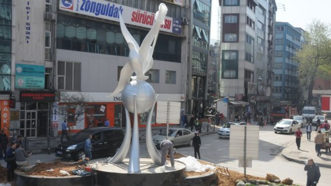 Zonguldak Belediyesi bir süre önce valilik binası karşısındaki kuğu heykelini sökmüştü. Yerine konacak olan ‘Barış ve özgürlük’ heykeli Ankara’dan getirilerek yerine kondu.