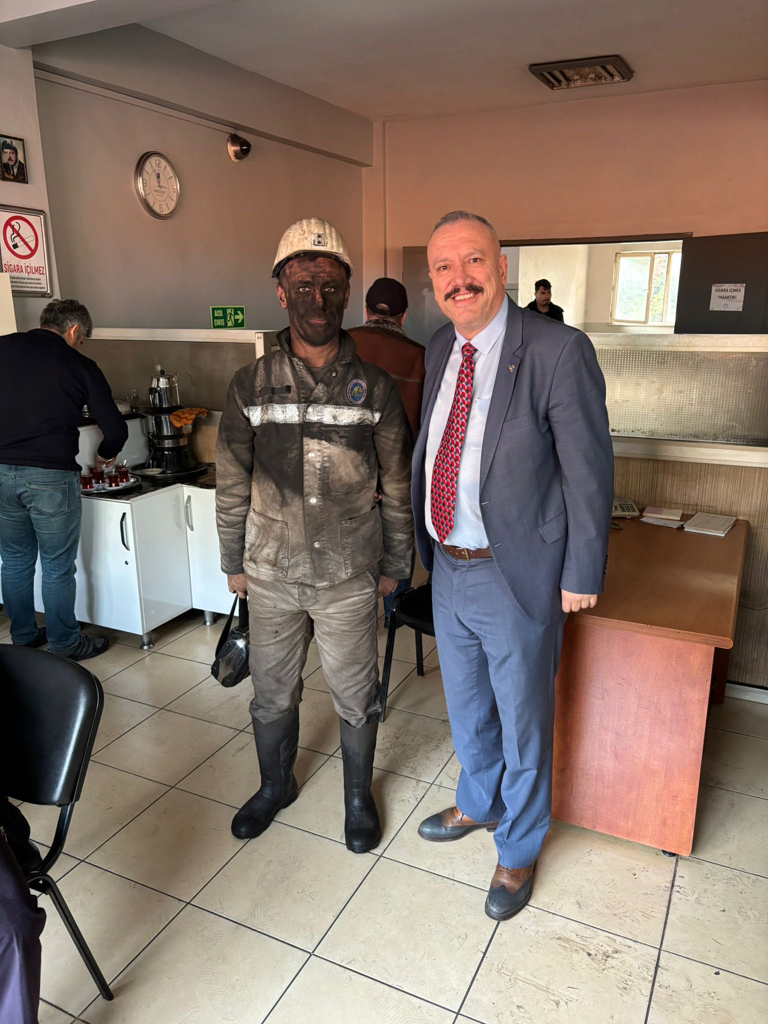 Genel Başkan Dr. Devlet Bahçeli’nin talimatları doğrultusunda yürütülen “Hayırlı Günler Komşum – Derdiniz Derdimizdir” sohbet programı kapsamında gerçekleşen ziyarette, madencilere hem genel başkanın selamları iletildi hem de emekleri için teşekkür edildi.