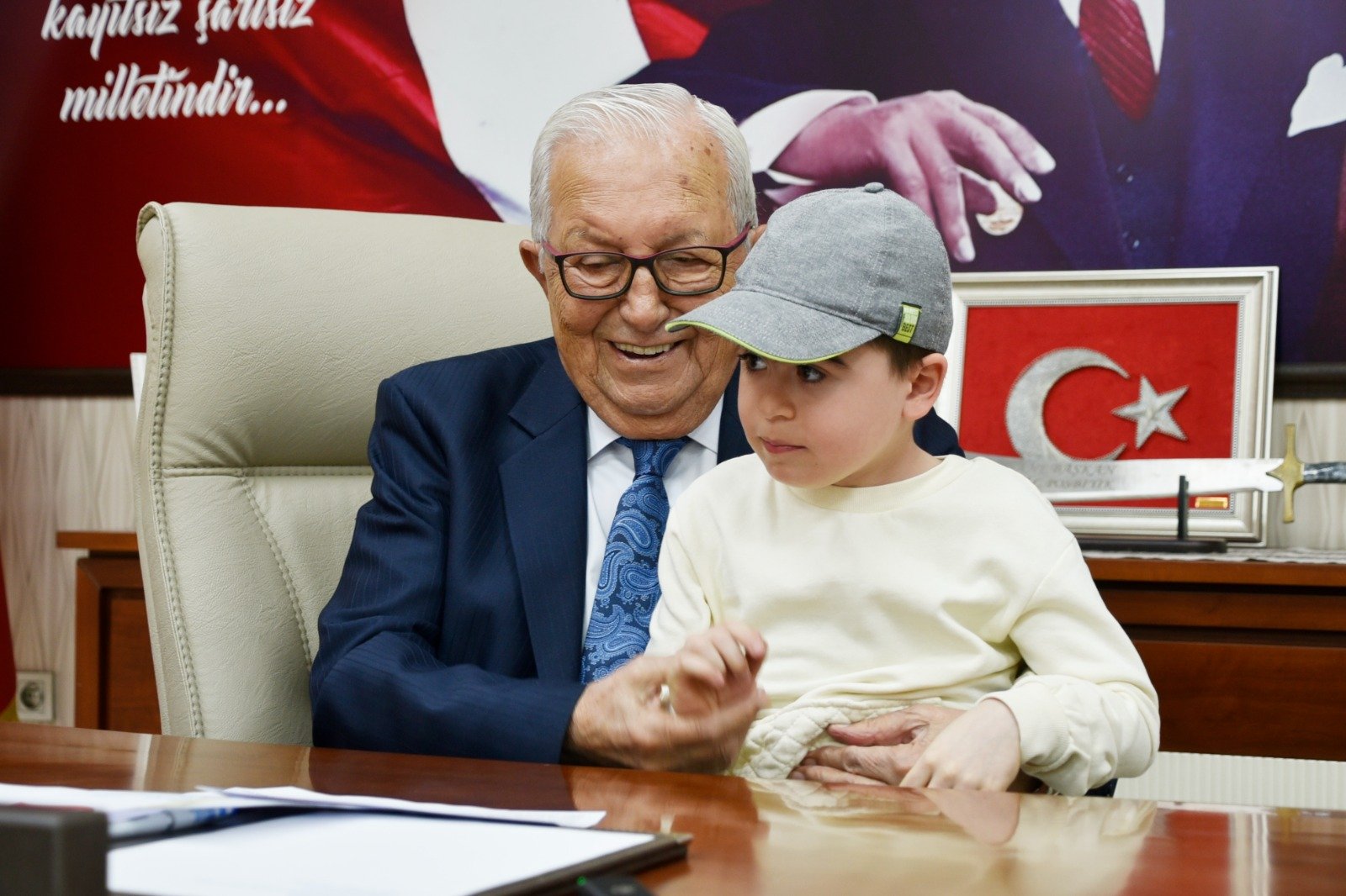 Kdz. Ereğli Belediye Başkanı Halil Posbıyık, Bartın’dan gelen Duchenne Musküler Distrofi (DMD) hastası Ata Can Terzi ve ailesini belediyede ağırladı.