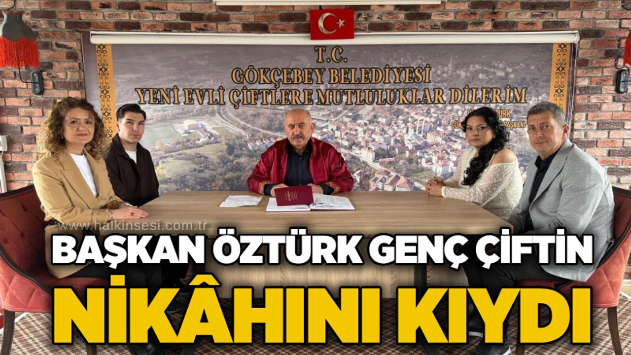 Nikâh cüzdanını geline takdim eden Başkan Öztürk, çifte bir ömür boyu sağlık, huzur ve mutluluk temennisinde bulundu. Tören sırasında genç çiftin evlilik yüzüklerini takan Öztürk, birlikteliğin simgesi olan kırmızı kurdeleyi de kesti.