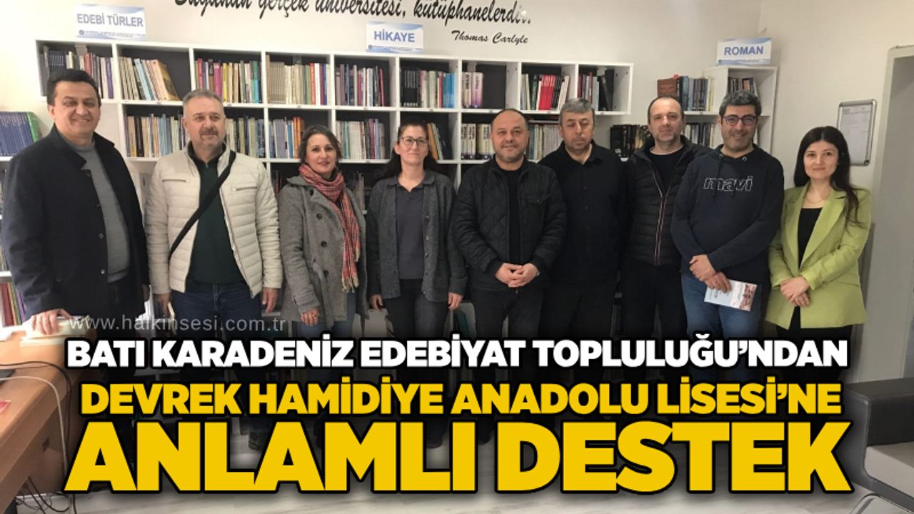 Yazar Elif Sağım’ın öncülüğünde Batı Karadeniz Edebiyat Topluluğu üyeleri, kendi eserlerini okul kütüphanesine bağışladı. Devrek’in tanınmış yazarlarından İbrahim Tığ, Elif Sağım, Uzay Karslı ile birlikte Gülden Işık, Muharrem Akman, Vedat Dinç, Murat Aktaş, Şükran Balekoğlu, Döndü Açıkgöz, Serkan Boğa, Zeynep Horuzoğlu, Sami Uludüz, Sevil Özdemir, Mustafa Şahin, Hayri Sarı, Hatice Terlikçi Genç, Nail Yurtaçan ve Üzeyir Karahasanoğlu eserlerini öğrencilere ulaştırdı.