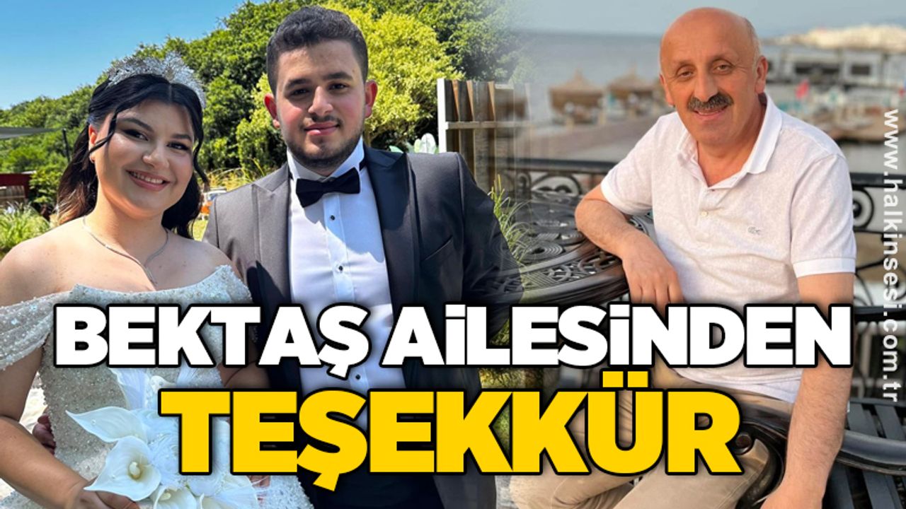 İş insanı Hüseyin Bektaş yaptığı açıklamada, Düğün törenimize icabet eden Milletvekilimize, Belediye Başkanlarımıza, Siyasi Partilen İl,İlçe ve Belde Başkanlarılarına, İş insanlarımıza,Güvenlik Güçlerimize, Karadeniz’in ünlü ses ve Kemençe üstatlarımıza, Ailemizi yanlız bırakmayan Gelik halkına ve Dostlarımıza ýürekten teşekkür ediyoruz" dedi.