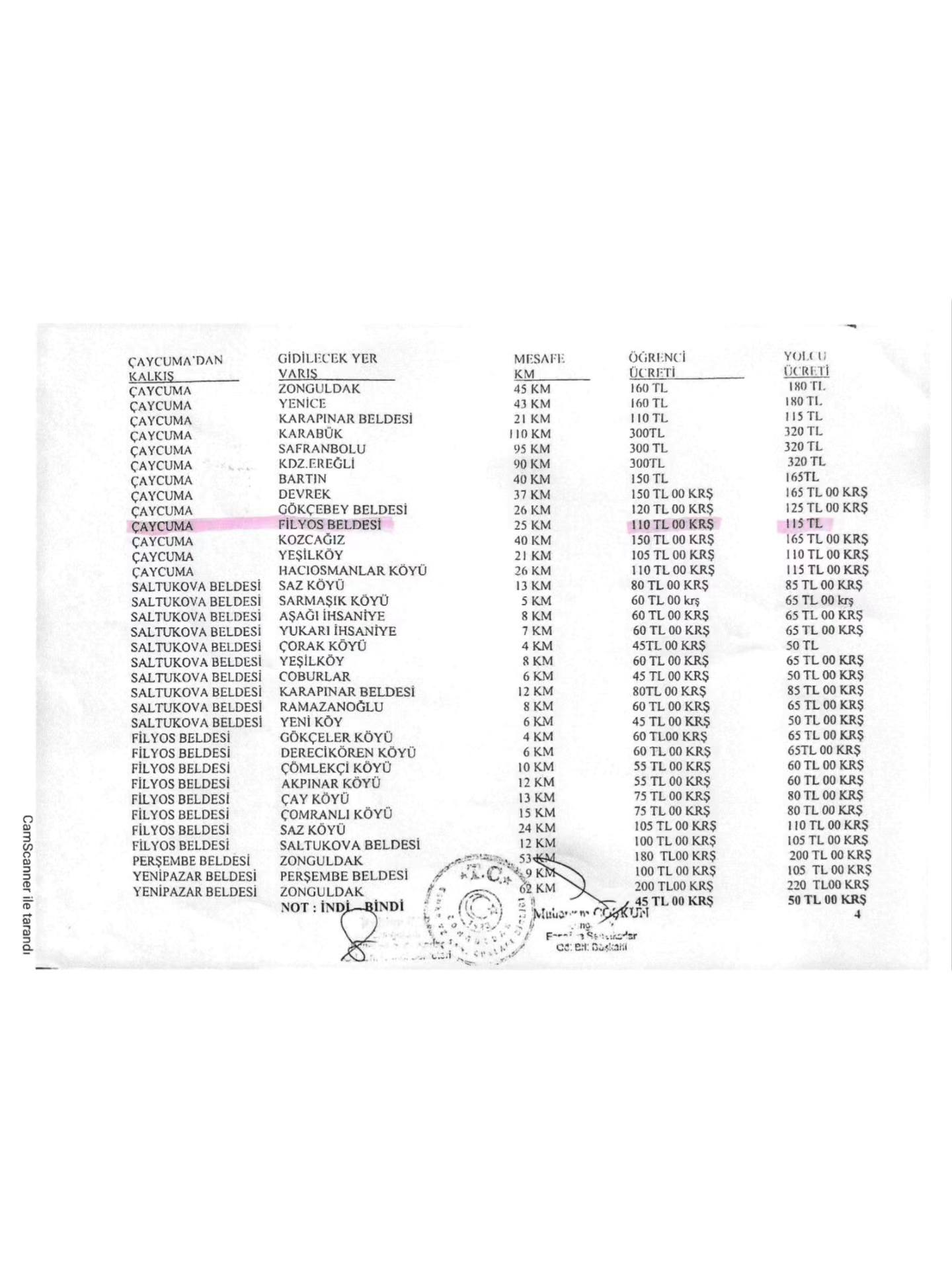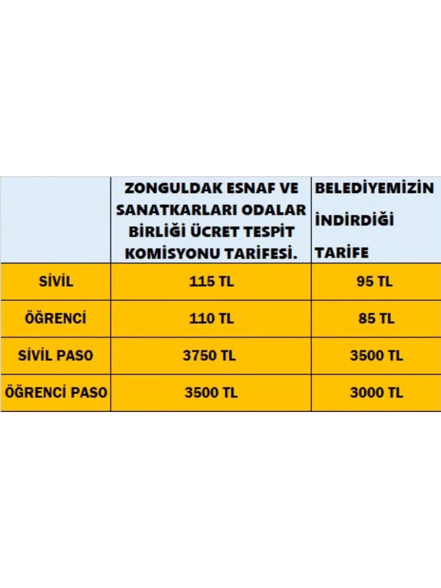 Belediyemize ulaşan yeni tarife üzerine, Filyos Taşıyıcılar Kooperatifi ile ivedilikle yapılan görüşmeler sonucunda halkımız lehine aşağıdaki indirimler sağlanmıştır.