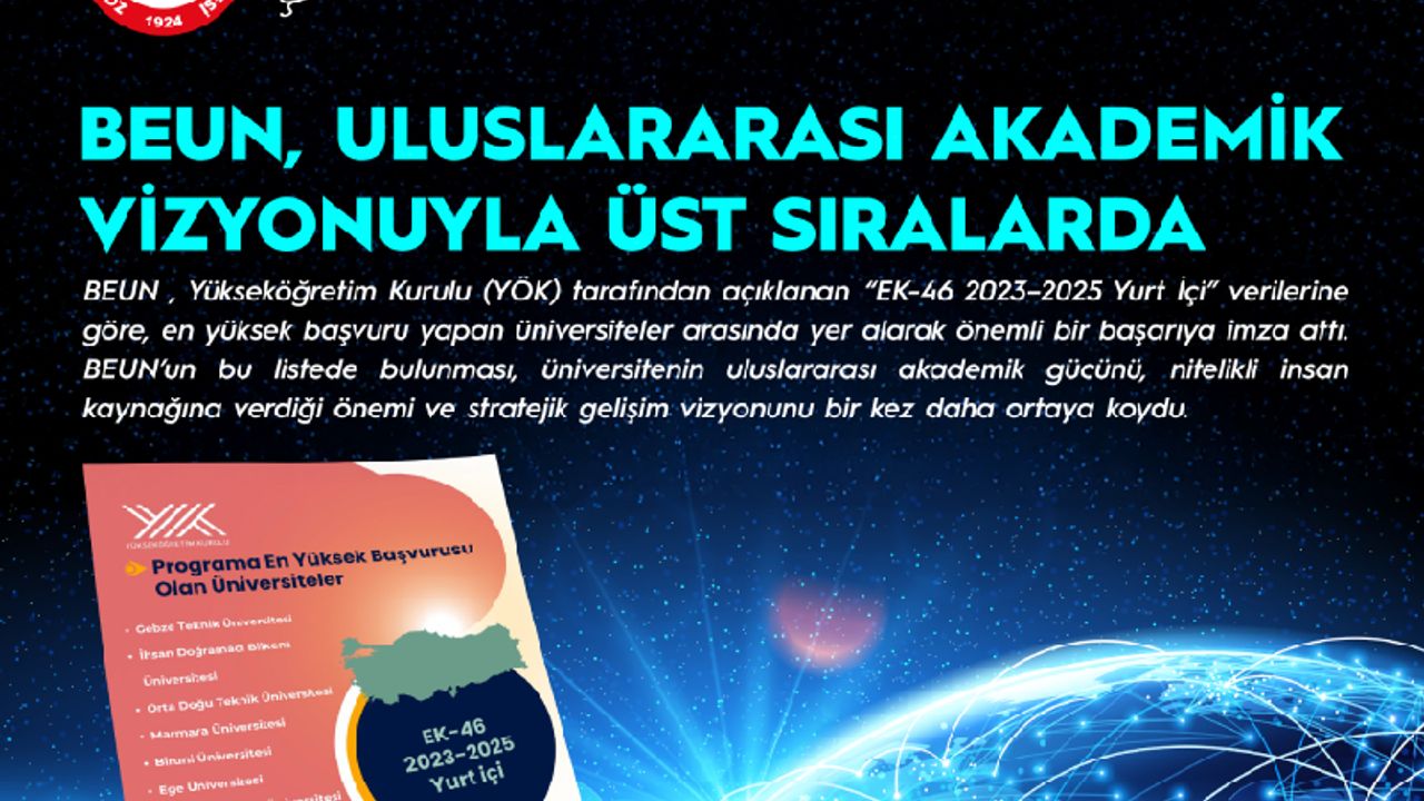 Yükseköğretim Kurulu tarafından uygulanan EK-46 maddesinin “EK-46 2023–2025 Yurt İçi” verilerine göre; Orta Doğu Teknik Üniversitesi, İstanbul Teknik Üniversitesi, Marmara Üniversitesi, Ege Üniversitesi, Dokuz Eylül Üniversitesi ve İhsan Doğramacı Bilkent Üniversitesi gibi Türkiye’nin köklü yükseköğretim kurumlarının yer aldığı listede BEUN’un da bulunması; üniversitenin bilimsel üretim gücü, araştırma odaklı yaklaşımı ve küresel akademik dinamizmi açısından dikkat çekici bir gösterge oldu.