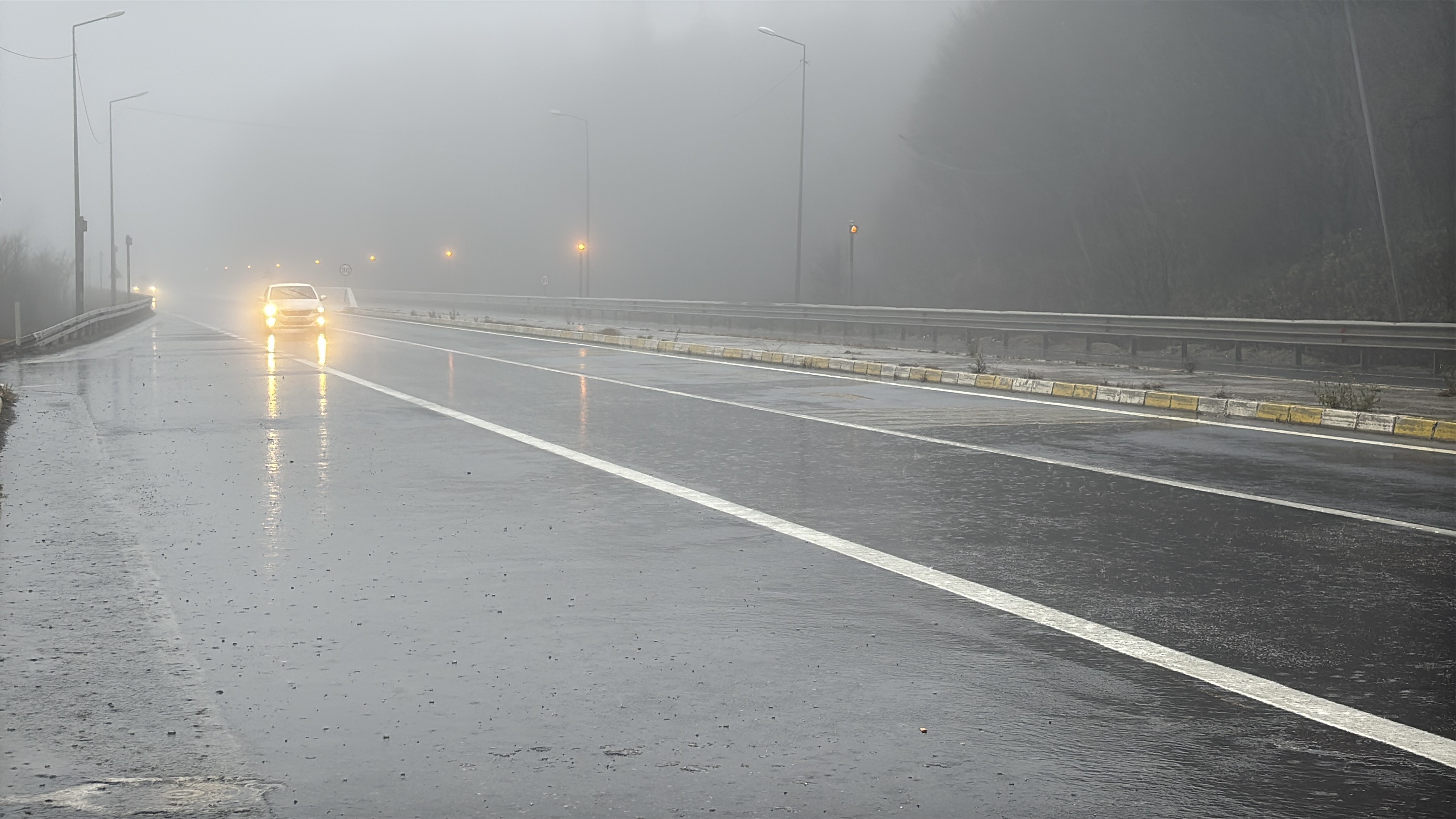 Bolu'da sabah saatlerinden itibaren yüksek kesimlerde yoğun sis ve sağanak etkili oluyor. Özellikle, D-100 kara yolu Bolu Dağı kesimi Yumrukaya, Abant Kavşağı, Elmalık, Bakacak, Seymenler, Karanlıkdere, Bıçkıyanı, Sarıçökek bölgesinde sis ve sağanak nedeniyle sürücüler zor anlar yaşadı. Sis nedeniyle görüş mesafesinin yer yer 30 metreye kadar düştüğü Bolu Dağı'nda sürücüler takip mesafelerini korumaları ve hız yapmamaları konusunda ışıklı tabelalar ve polis ekipleri tarafından uyarılıyor.
