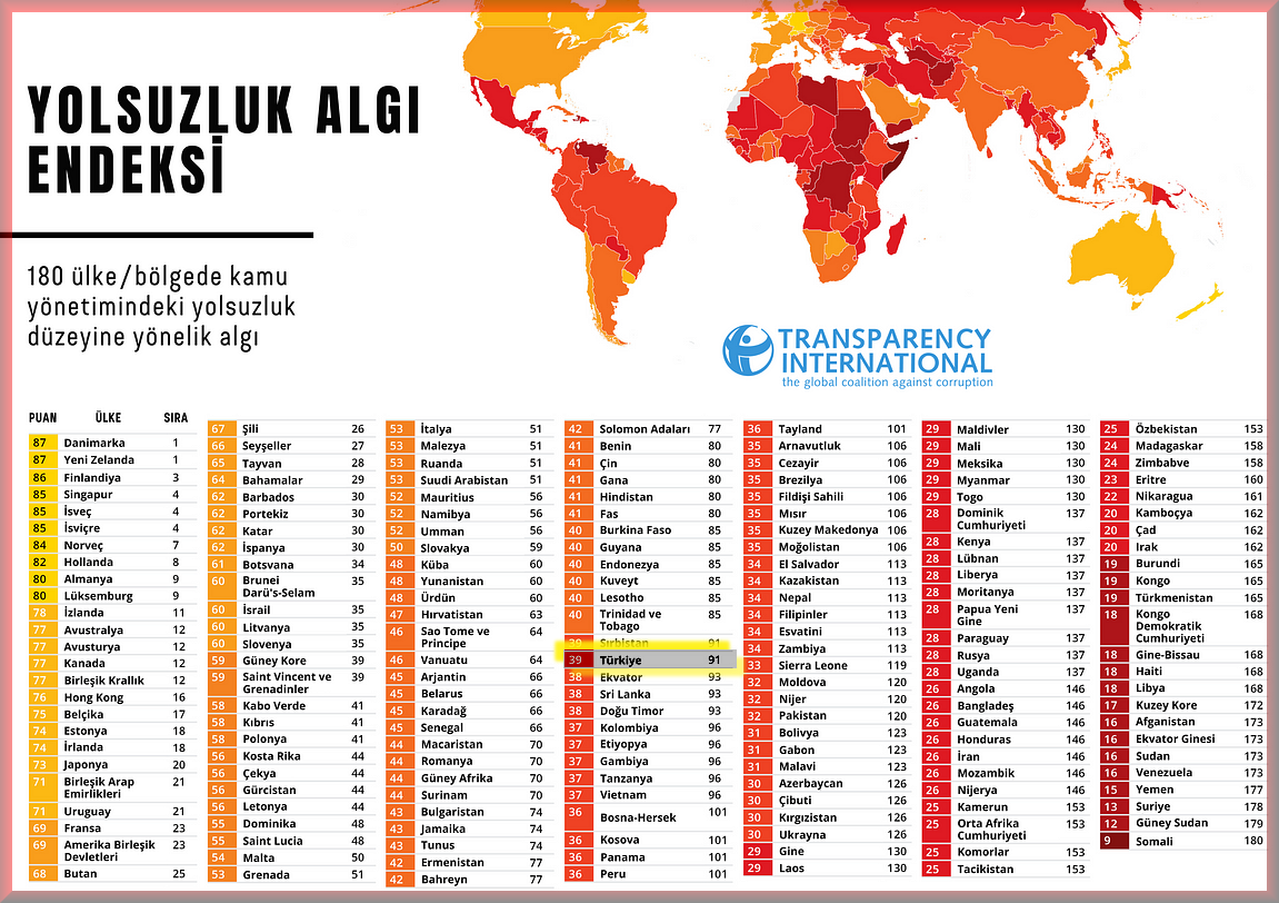 Dünya yolsuzluk endeksine bakıldığında (https://tr.wikipedia.org/