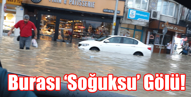 Vakıfbank Soğuksu Şubesi önündeki meydan tamamen suyla doldu. Vatandaşlar zor anlar yaşarken, “Burası Soğuksu Gölü” yorumları yapıldı.