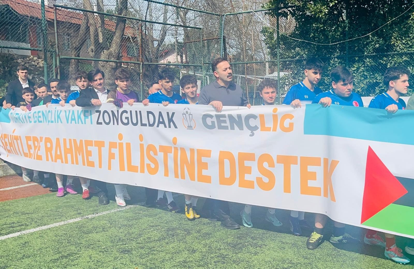 Zonguldak’ta, TÜGVA İl Temsilciliği tarafından düzenlenen Liseler Arası Futbol Turnuvası’nın final müsabakası büyük bir coşkuya sahne oldu. Final karşılaşmasının açılış vuruşunu, AK Parti Zonguldak İl Başkanı Mustafa Çağlayan gerçekleştirdi.
