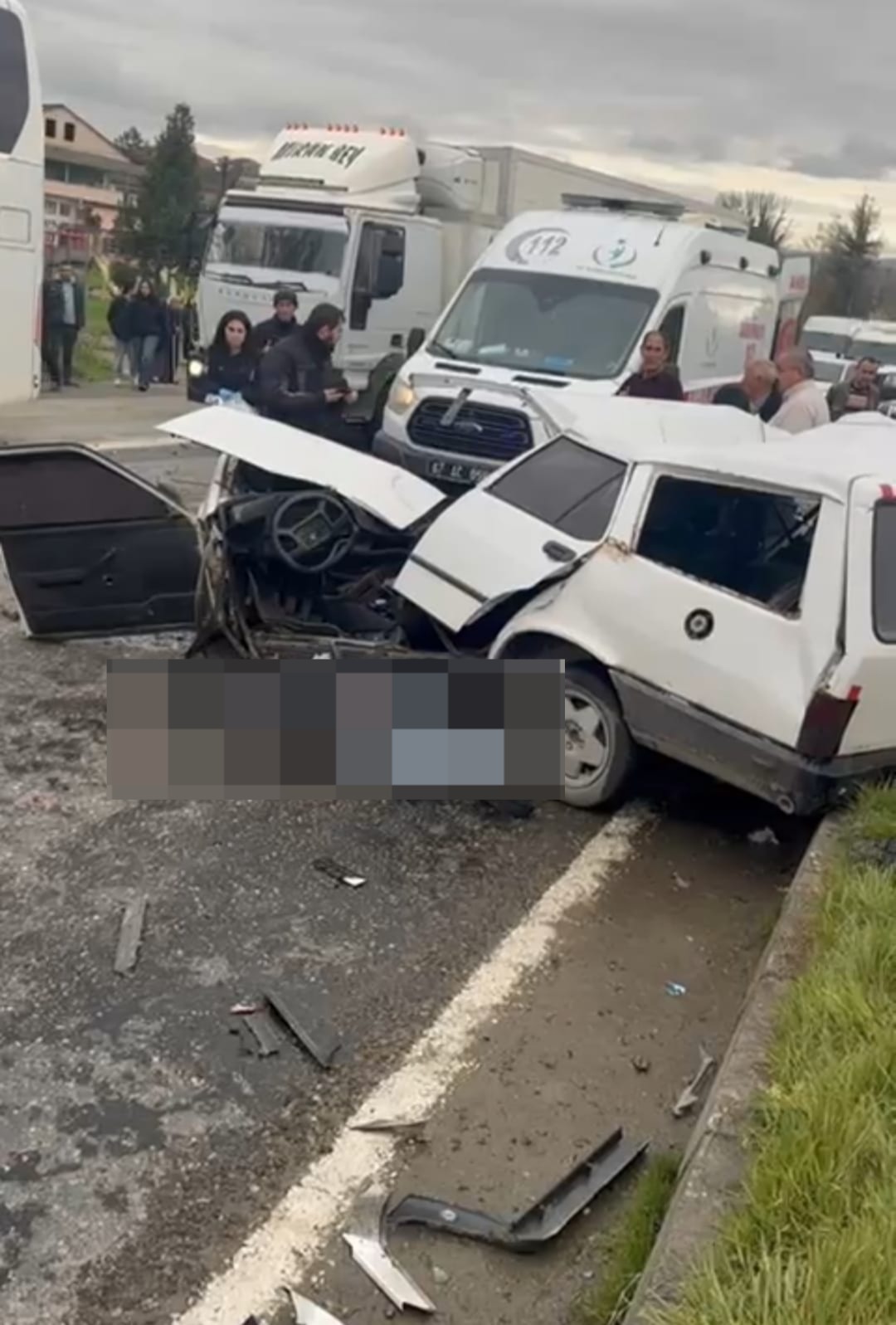 Otomobilin kamyona çarpmasıyla birlikte ikiye ayrıldığı görüldü. Kazanın ardından olay yerine çok sayıda ekip sevk edildi.