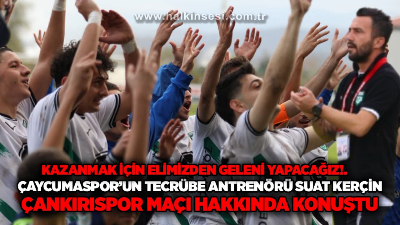 Bölgesel Amatör Lig 4. Grup’ta 8. Hafta maçında sahasında Yeniçağspor’u 2-0 yenerek ligde üst üste 5. galibiyetini alarak şampiyonluğa koşan temsilcimiz AVS Çaycumaspor’da teknik direktör Suat Kerçin, Yeniçağspor karşısında alınan galibiyeti ve 9. Hafta maçında deplasmanda oynanacak olan zorlu Çankırıspor maçı hakkında önemli açıklamalarda bulundu. Özellikle Çankırıspor maçının önemine dikkat çeken Kerçin, rakibin tecrübeli ve iddialı bir camia olduğunu söylerlen, bu maçı kazanmak için ellerinden geleni yapacaklarını söyledi.