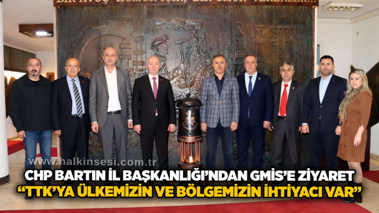 GMİS Genel Başkan Vekili İsa Mutlu ise ziyaretten duyduğu memnuniyeti dile getirerek, TTK’daki son gelişmeler hakkında CHP Bartın İl Başkanlığı heyetine bilgi verdi. Mutlu, önceliklerinin işçi sağlığı ve iş güvenliği olduğunu vurgulayarak, “TTK vazgeçilemez stratejik bir kurumdur. Türkiye’nin ve bölgemizin TTK’ya ihtiyacı var. İşçi sağlığı ve güvenliğinin eksiksiz sağlandığı şartlarda, mümkün olan en kısa sürede üretime yeniden başlayarak ülkemizin ekonomisine ve bölgemize katkı sunmaya devam edeceğiz” ifadelerini kullandı.