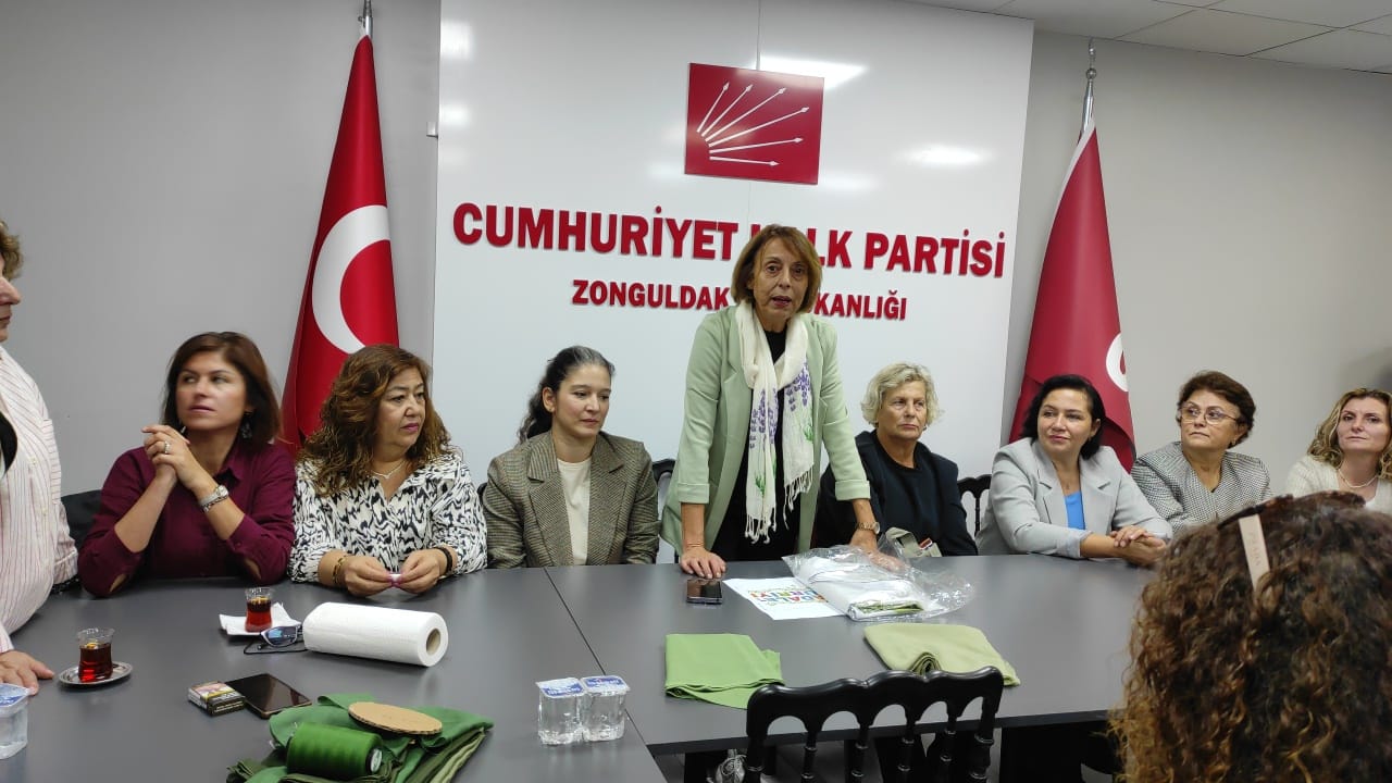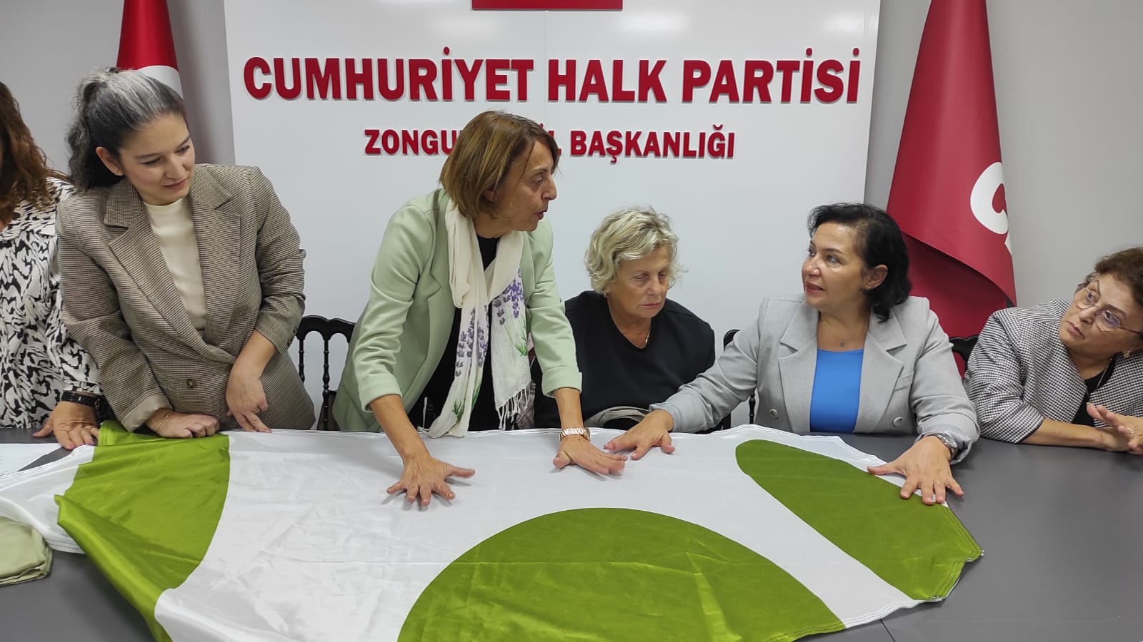 CHP Genel Merkezi’nin 81 ilde eş zamanlı olarak yürüttüğü “Zeytin Dalı” projesinin Zonguldak ayağında çalışmalar başladı. Parti binasında bir araya gelen Kadın Kolları üyeleri, ellerindeki iğne ve ipliklerle Zonguldak’a ait bayrak kumaşlarını dikmeye başladı.