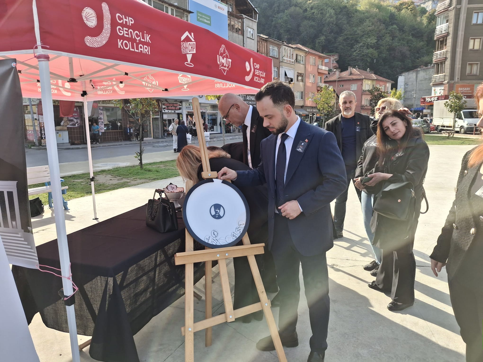 CHP Kozlu İlçe Başkanı Merve Arslan ve ekibinin yanı sıra oluşturulan “Atamızı Anma Köşesi”nni açılışına Kozlu Belediye Başkanvekili Mesut Cora'da katıldı.