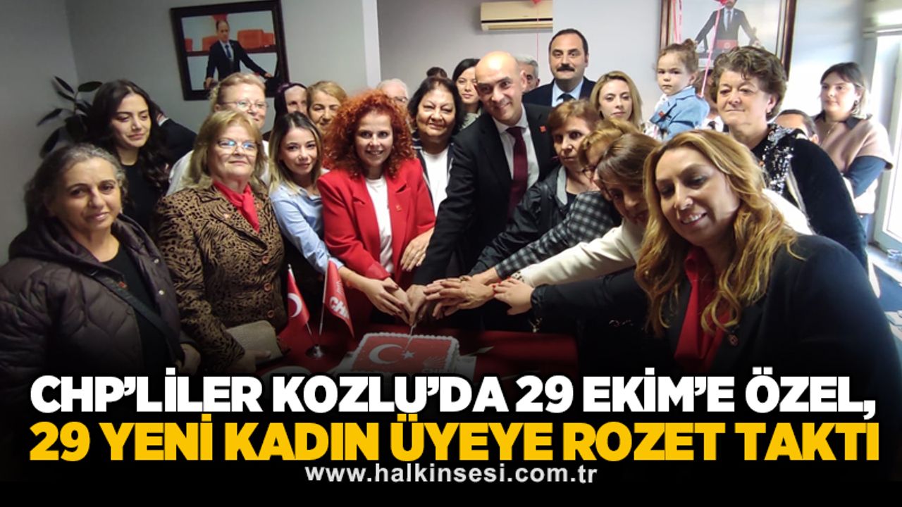 Konuşmaların ardından 29 Ekim’de CHP’ye yeni üye olan 29 kadına parti rozetleri, İl Başkanı Devrim Dural, Kozlu Belediye Başkanı Altuğ Dökmeci, Kozlu İlçe Başkanı Merve Arslan, Kozlu Belediye Başkanı Altuğ Dökmeci’nin eşi Serap Dökmeci ve İl Kadın Kolları Başkanı Nazan Pulat tarafından takıldı. CHP’liler rozet takımının ardından günün anısına pasta keserek, parti binası önünde balon uçurdular.