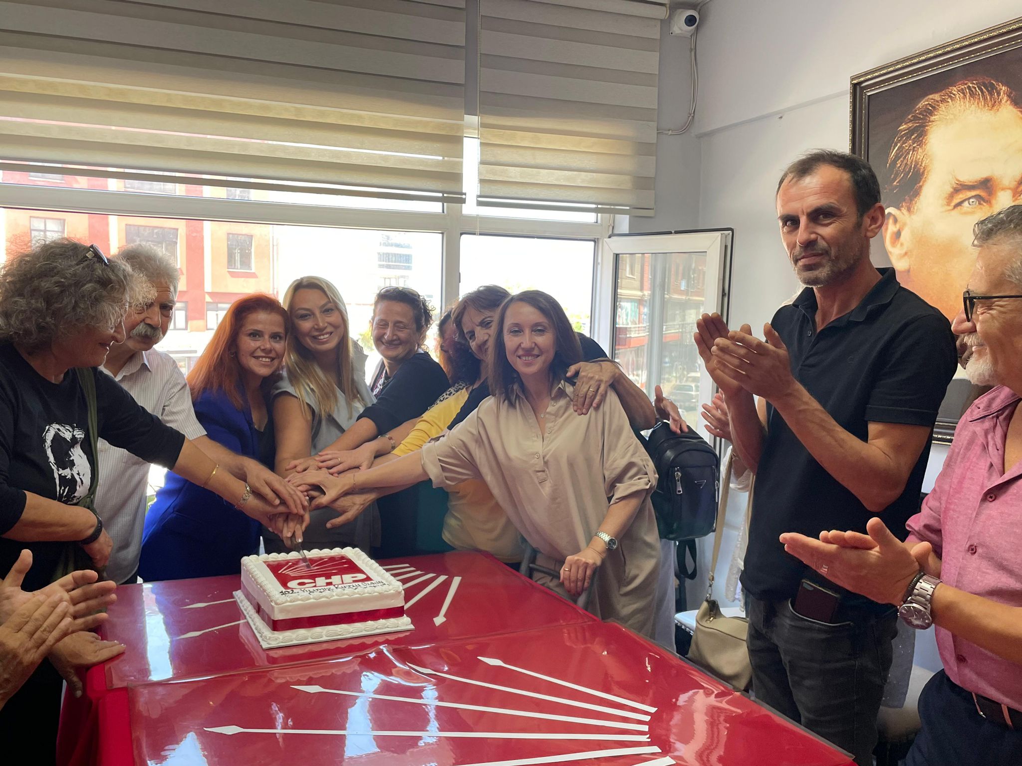 CHP Kozlu İlçe Başkanı Merve Arslan ve ekibi, Atatürk Anıtı’ndaki törenin ardından partilerinin kuruluşunun 102’nci yıldönümünü parti binasında pasta keserek kutladı.