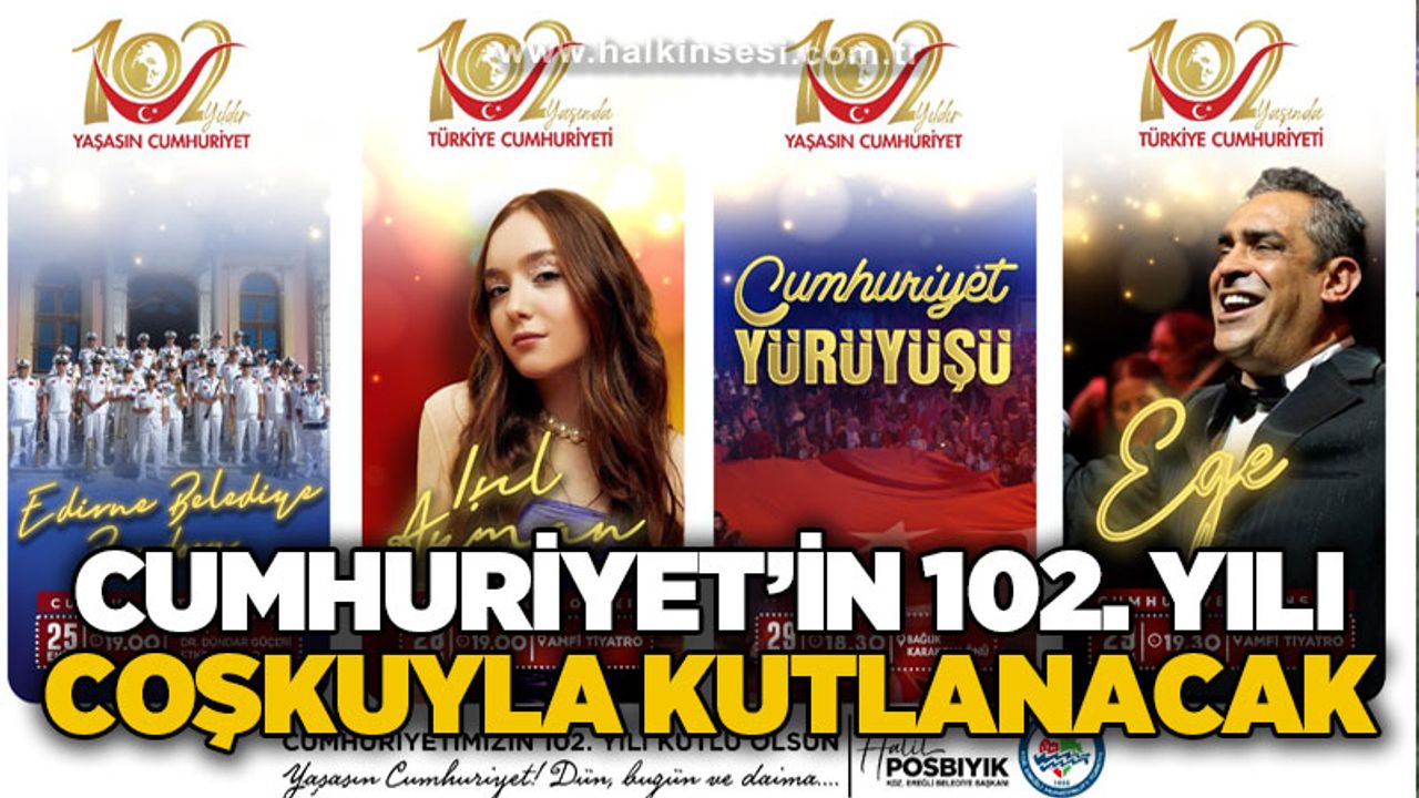 Cumhuriyet kutlamaları, 25 Ekim Cumartesi akşamı Atatürk Kültür Merkezi Dr. Dündar Güçeri Etkinlik Salonu’nda, Edirne Belediye Bandosu tarafından marş ve seçkin eserlerin seslendirileceği Cumhuriyet Konseri ile başlayacak.