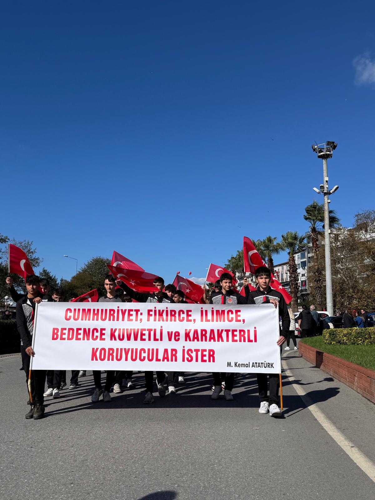 Kortej boyunca vatandaşlar, yürüyüşe katılan öğrencilere ve kurum temsilcilerine alkışlarla destek verdi. Etkinlik alanında sahnelenen birbirinden etkileyici gösteriler izleyenlere duygusal anlar yaşattı. Cumhuriyet’in değerlerine yürekten bağlı öğretmenler, öğrenciler ve tüm emeği geçenler bu özel günde göğsü dik, gururla yerlerini aldı.