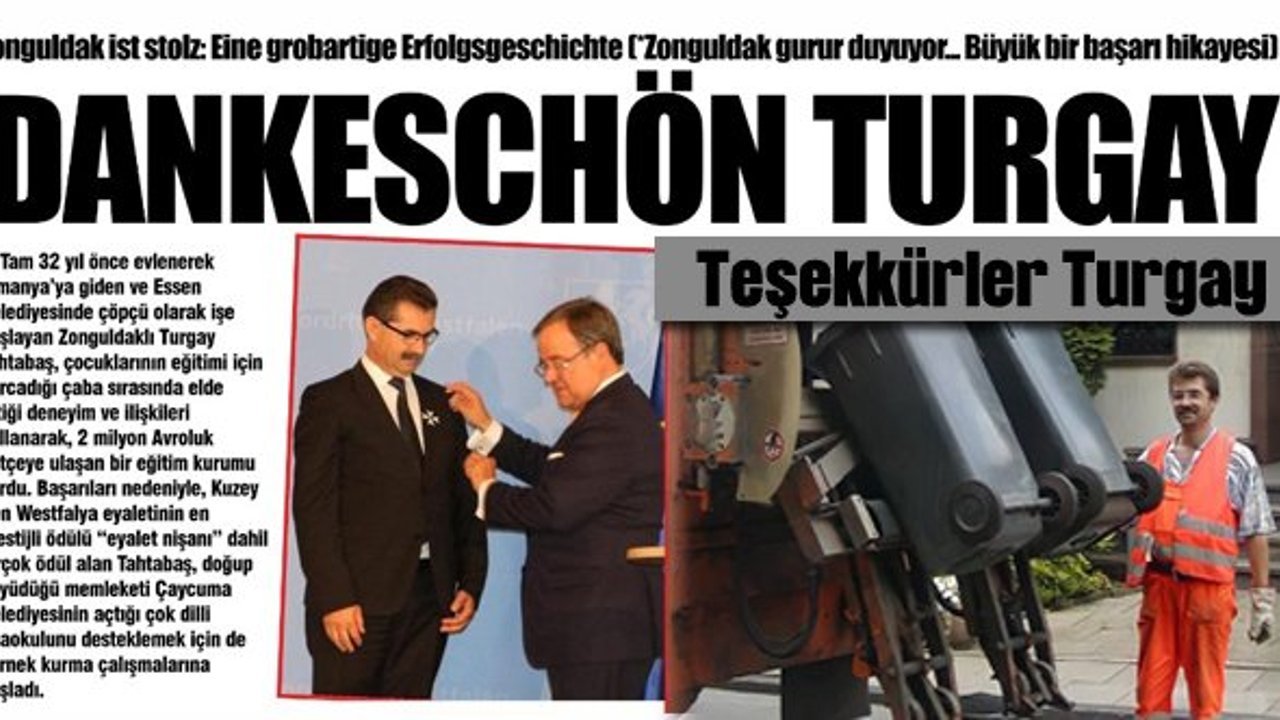Almanya’ya göçmen işçi olarak giden ve halen iş akdi askıda da olsa Essen Belediyesinin “temizlik işçiliği” kadrosunda bulunan Zonguldaklı Turgay Tahtabaş, eşi Türkan Hanım’la birlikte olağanüstü bir başarı öyküsüne imza attı. Essen Belediyesinin temizlik işleri biriminde, 2 yıl süpürgecilik yapıp 23 yıl da çöp kamyonunda çalışan Tahtabaş, çocuklarının daha iyi eğitim alması için harcadığı büyük çaba sırasında edindiği deneyimleri başkalarıyla da paylaşmak için çıktığı yolda, yıllık 2 milyon Avro’luk fonuyöneten bir eğitim kurumu oluşturdu. En başında Türk çocuklarına eğitimde fırsat eşitliği sağlamak için çalışmalara başlayan Tahtabaş, bu amaçlakurduğu Gelecek Eğitim Merkezini (ZukunftBildungswerk), içinde Almanlarında bulunduğu 150’ye yakın ülke insanına hizmet verir hale getirdi. Kurumunda, 40 kadrolu, 250 yarı zamanlı ve 50 gönüllü çalışanı bulunan Tahtabaş, bu çabalarıyla, Alman yetkililerinden, ülkenin en prestijli ödüllerinden biri “Eyaleti Nişanı” da içinde birçok ödül de aldı.