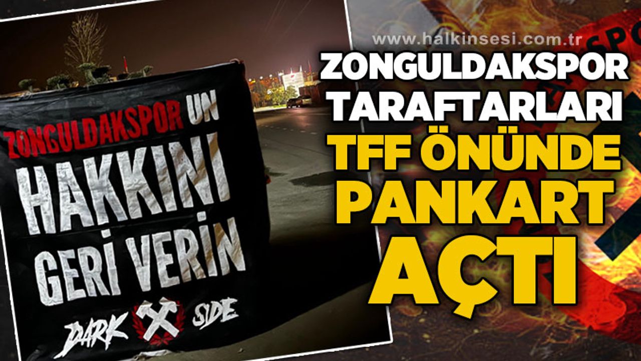 Taraftarlar, TFF binası önünde “Zonguldakspor’un hakkını verin” yazılı pankart açarak, federasyona adalet talebinde bulundu.