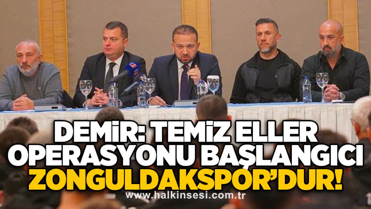 Zonguldakspor Kulüp Başkanı Harun Demir, Dedeman Otel’de yaptığı basın açıklamasında Temiz Eller Operasyonu hakkında önemli ve çarpıcı açıklamalarda bulundu. Başkan Demir: “Temiz Eller Operasyonu başlangıcı Zonguldakspor’dur. Adalet Bakanımız Yılmaz Tunç, Ak Parti Milletvekilimiz Ahmet Çolakoğlu ve AK Parti İl Başkanımız Mustafa Çağlayan ile birlikte görüştük. Bakanımız Yılmaz Tunç’ta TFF Federasyon Başkanı’yla temas kurdu. Bugün bu süreç ilerliyorsa, bu görüşmelerin sonucudur.” İfadelerine yer verdi.