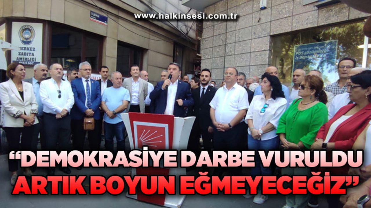 Zonguldak Belediye Başkanı Tahsin Erdem ise konuşmasında, “Belediye başkanlarını içeri attınız, basın mensuplarını içeri attınız. İl başkanlarına sıra geldi, peki daha ne hedefliyorsunuz? Bu ülkeye demokrasiyi getiren Cumhuriyet Halk Partisi’dir, bu asla unutulmasın. Bugün bu ülkeye yapılan zulüm, zalimlik asla unutulmayacaktır. Tarih bunları yazacaktır. Geçmişinizden utanacak hamlelere tevessül etmeyin, bu hesap kolay verilmez. En büyük hesap sandıkta verilecektir. Arkadaşlar, bu ülkeyi güvercin ürkekliğiyle yönetmeye çalışıyorlar ama nafile. Bütün kamuoyu yoklamaları Cumhuriyet Halk Partisi’ne işaret ediyor.