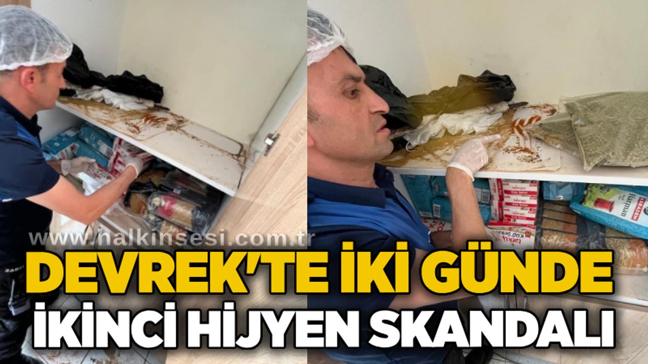 Zonguldak'ın Devrek ilçesinde iki günde ikinci hijyen skandalı ortaya çıktı. Gizli bölmesindeki imalathanede ortaya çıkan kokmuş etlerin ortaya çıkan ve mühürlenen pidecinin ardından bu kez de bir yemek işletmesi, denetimlerde ortaya çıkan ağır hijyen ihlalleri nedeniyle mühürlendi.