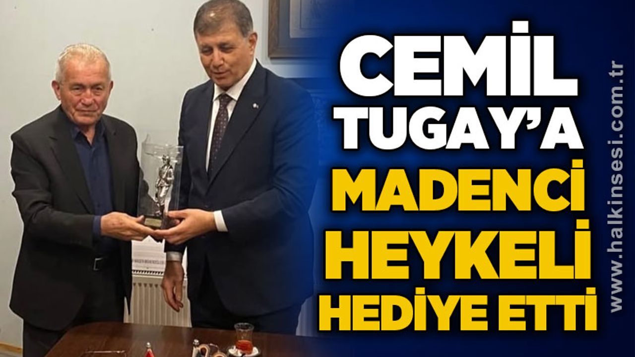 TMMO Başkanı Erdoğan Kaymakçı, günün anısına İzmir Büyükşehir Belediye Başkanı Dr. Cemil Tugay’a madenci heykeli hediye etti.
