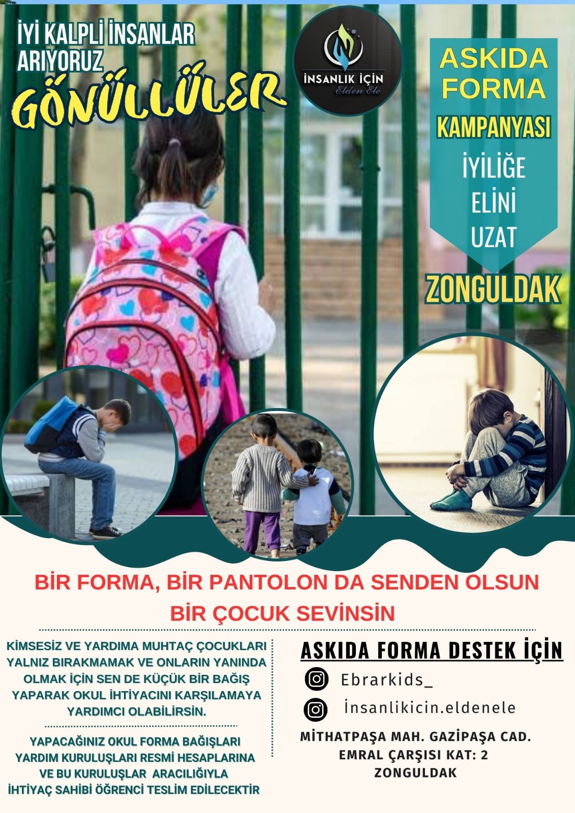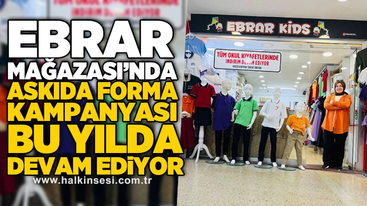 Zonguldak'ta okul kıyafetleri satan Ebrar mağazası, geçen yıl olduğu gibi bu yılda askıda forma kampanyasını ve indirimli satışlarına devam ediyor. Ebrar mağazası sahibi Ebrar Boz Akgün, geçen yıl olduğu gibi bu yılda kazancından bir miktar ayırarak öğrencilerin okul giyimine destek olmaya çalıştıklarını söylerken, durumu iyi olmayan öğrenciler ve velilerin zor durumda kalmamaları adına hem askıda forma kampanyasını hem de okul kıyafetlerini indirimli fiyattan satmaya devam ettiklerini söyledi. Ayrıca Akgün, hayır sever vatandaşlarında askıda forma kampanyasına destek olduğunu söylerken, hiçbir öğrenciyi ve velileri eli boş göndermeye çalıştıklarını söyledi.