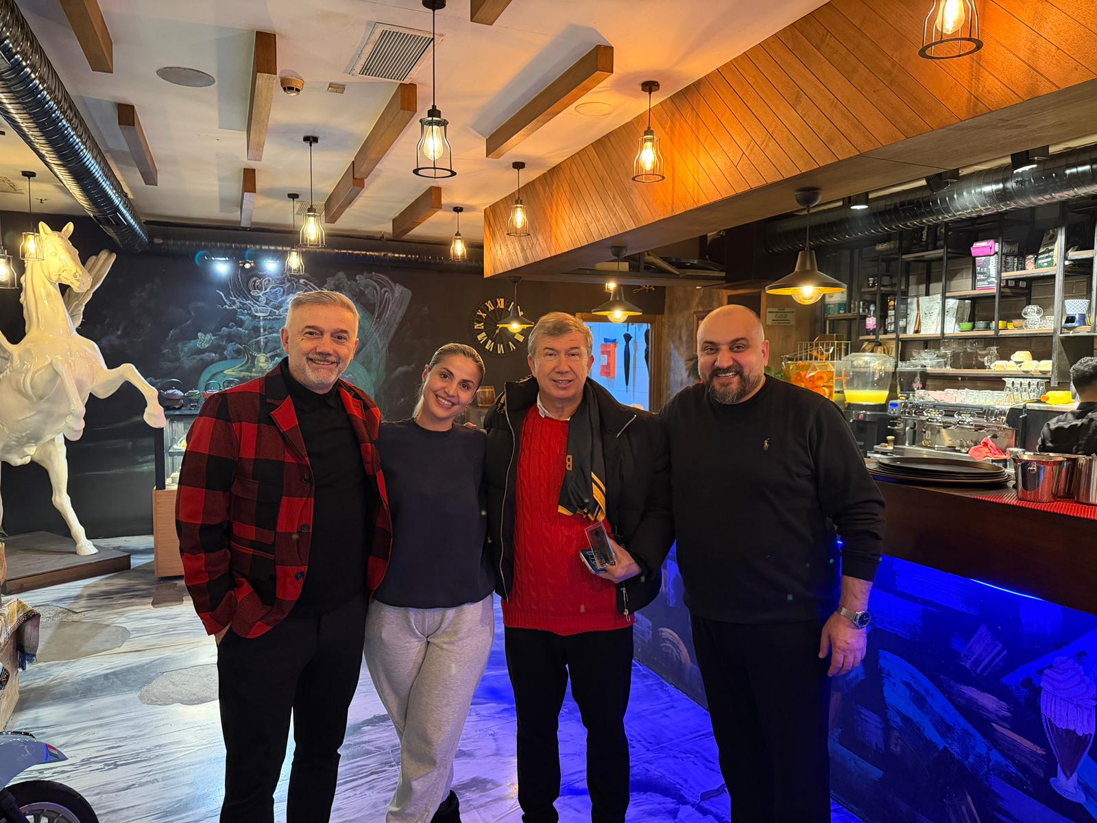Galatasaray’ın efsane futbolcusu Tanju Çolak ile Trabzonspor’un unutulmaz golcüsü Hami Mandıralı, akşam yemeğinde Ruşen Keleşoğlu ile bir araya geldi. Ruşen Keleşoğlu ve eşi Hicran Keleşoğlu efsane futbolcularla hatıra fotoğrafı çektirdi.