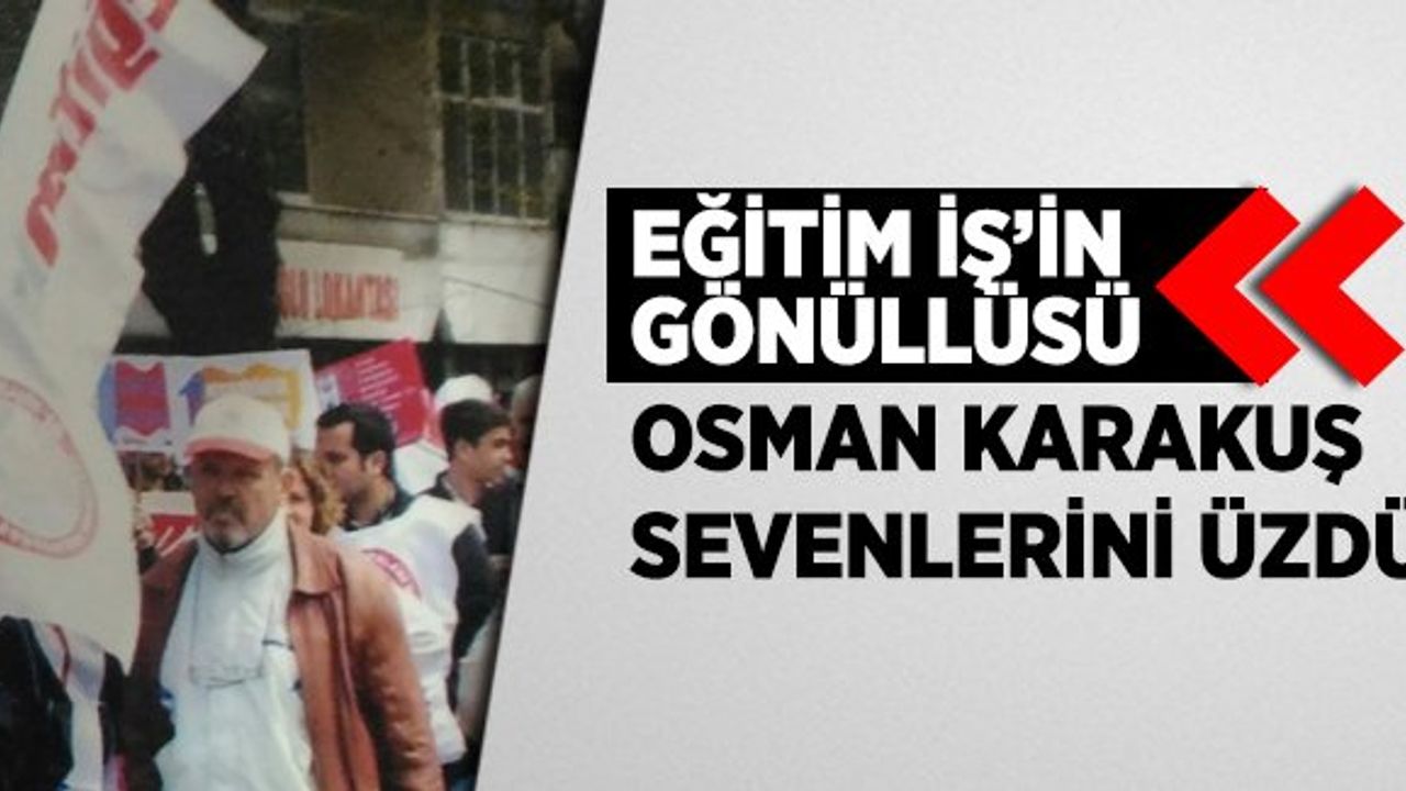 Eğitim İş’in Zonguldak’ta kurulmasına destek veren ve her zaman yanımızda olan abimiz kalp rahatsızlığına yenilerek aramızdan ayıldı. Osman Karakuş Edirne kökenli olmakla beraber çalışma hayatı Zonguldak’ta geçmiştir. Ölümü camiamızda derin üzüntü kattığı gibi sevenlerini yasa boğmuştur. Bizler için sürpriz bir vedalaşma yapan abimiz yaptıklarıyla , davamıza verdiği destekle her zaman gönüllerimizde yaşayacaktır. Kendisi çevresinde neşeli ve demokrasi aşığı olan bir büyüğümüzdü. Dostlukları her zaman yapıcı ve yardım severdi. Emekli hayatı onun için ayrı önemi vardı. Hayata ve dünya malına önem vermeyen arkadaşlarımıza değer veren arkadaş camiasını üzmeyen çok sıcak kanlı bir insandı. Özellikle Eğitim İş’in eylemlerinde her zaman katılarak destek vermiştir ve bu desteği gönüllük adına yaptığını bizlere ifade etmiştir.