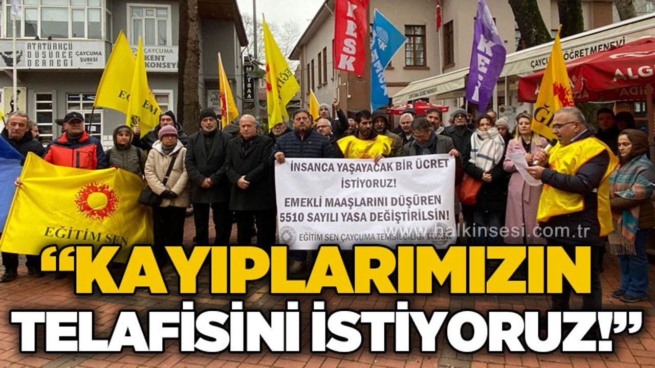 “İnsanca Yaşayacak Bir Ücret İstiyoruz, Emekli Maaşlarını Düşüren 5510 Sayılı Yasa Değiştirilsin” pankartının açıldığı basın açıklamasına Eğitim Sen üyeleri ve emeklilerin yanı sıra CHP Çaycuma İlçe Başkanı Fahri Diler ve Yönetim Kurulu Üyeleri, İl Genel Meclis Üyeleri Ayhan Doğan, Hamdi Akyüz ve Selahattin Ergün, Çaycuma Kent Konseyi Başkanı İsmail İnam, ADD Çaycuma Başkanı Ercan Başar ve Yönetim Kurulu Üyeleri de katıldı.