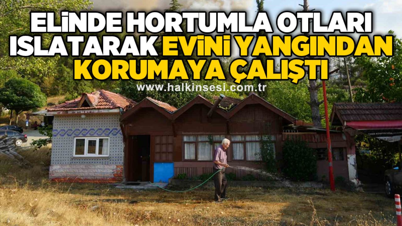 Karasu Mahallesi’nde yaşayan Suat Atalay isimli bir vatandaş ise yaklaşan orman yangınından evini korumak için bahçesindeki otları hortumla sulamaya çalıştı. Yangın haberini duyar duymaz evine geldiğini ve önlem almaya çalıştığını belirten Suat Atalay, "Ben Safranbolu’da yaşıyorum. Burada bahçem var. Haftada bir iki kez geliyoruz. Komşum arayıp yangın olduğunu söyledi. Hemen geldim. Yangın bize mesafeli ama yakın. Rüzgarın nereye geleceği belli değil. Biz de elimizde hortumla yangını söndürmek amaçlı değil de evin etrafını korumak için uğraşıyoruz" dedi.